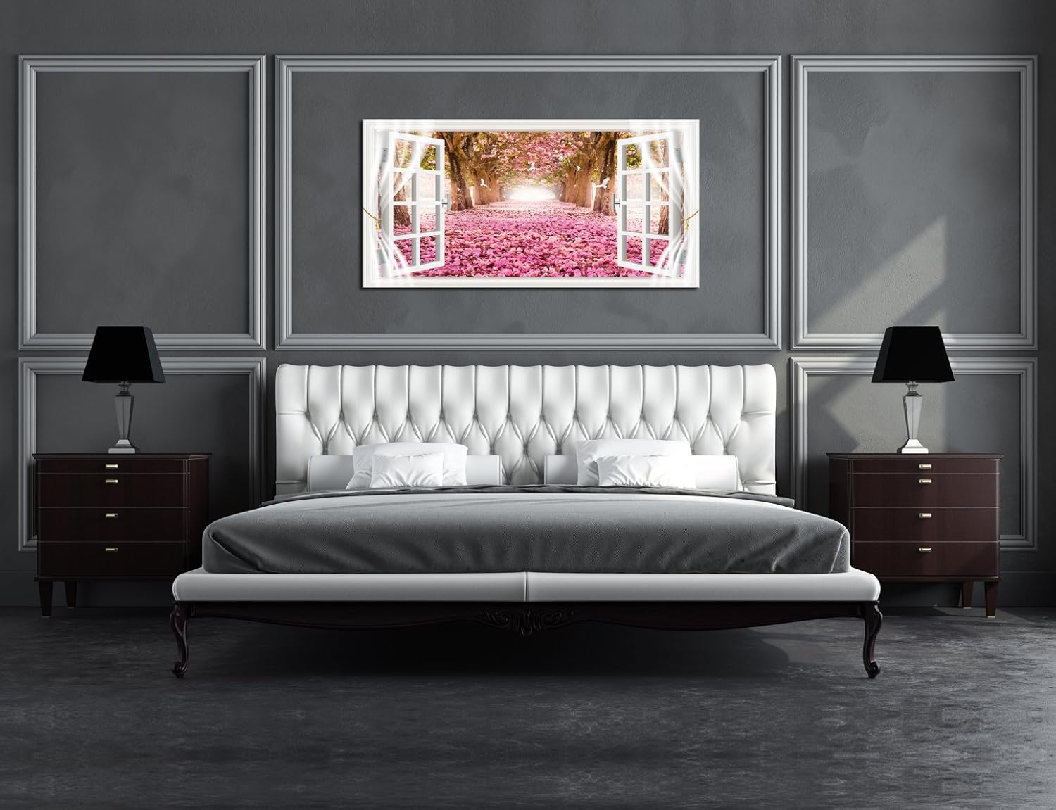 Cao Gen Decor Art-AH40150 Wall Art Trees and Pink Rose Paintings Printed Pictures Stretched and Framed Canvas Paintings Ready to Hang for Home Decorations Wall Decor