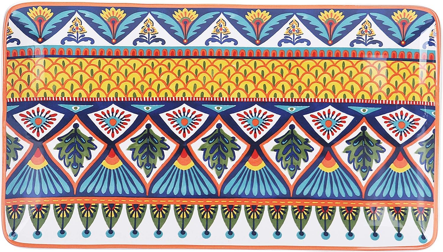 Bico Havana Ceramic 14 inch Rectangular Serving Platter, Set of 2, for Serving Salad, Pasta, Cheese, Ham, Appetizer, Microwave & Dishwasher Safe