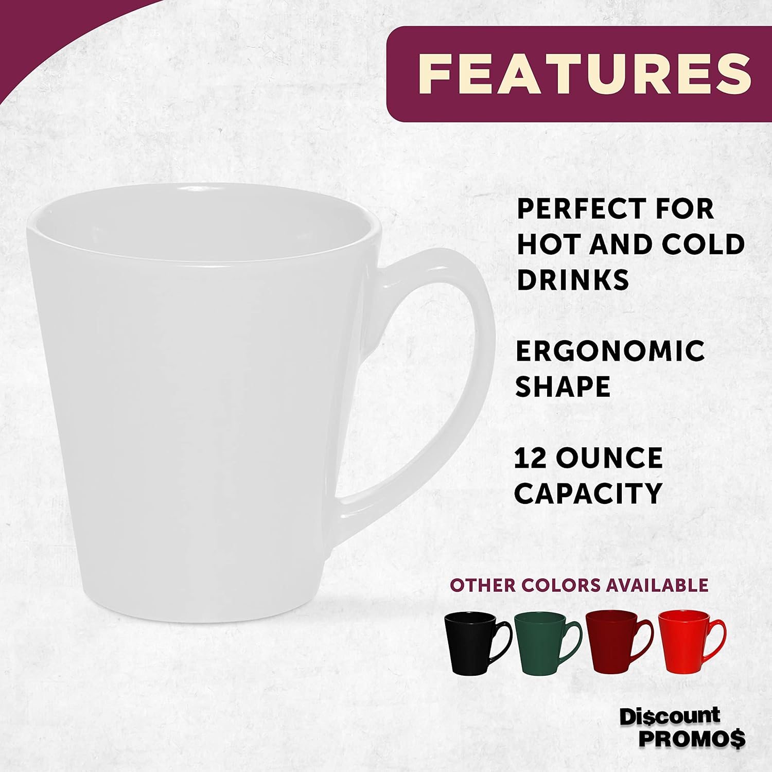 DISCOUNT PROMOS Glossy Ceramic Latte Coffee Mug 12 oz. Set of 10, Bulk Pack - Perfect for Tea, Espresso, Cappuccino, Hot Cocoa - White