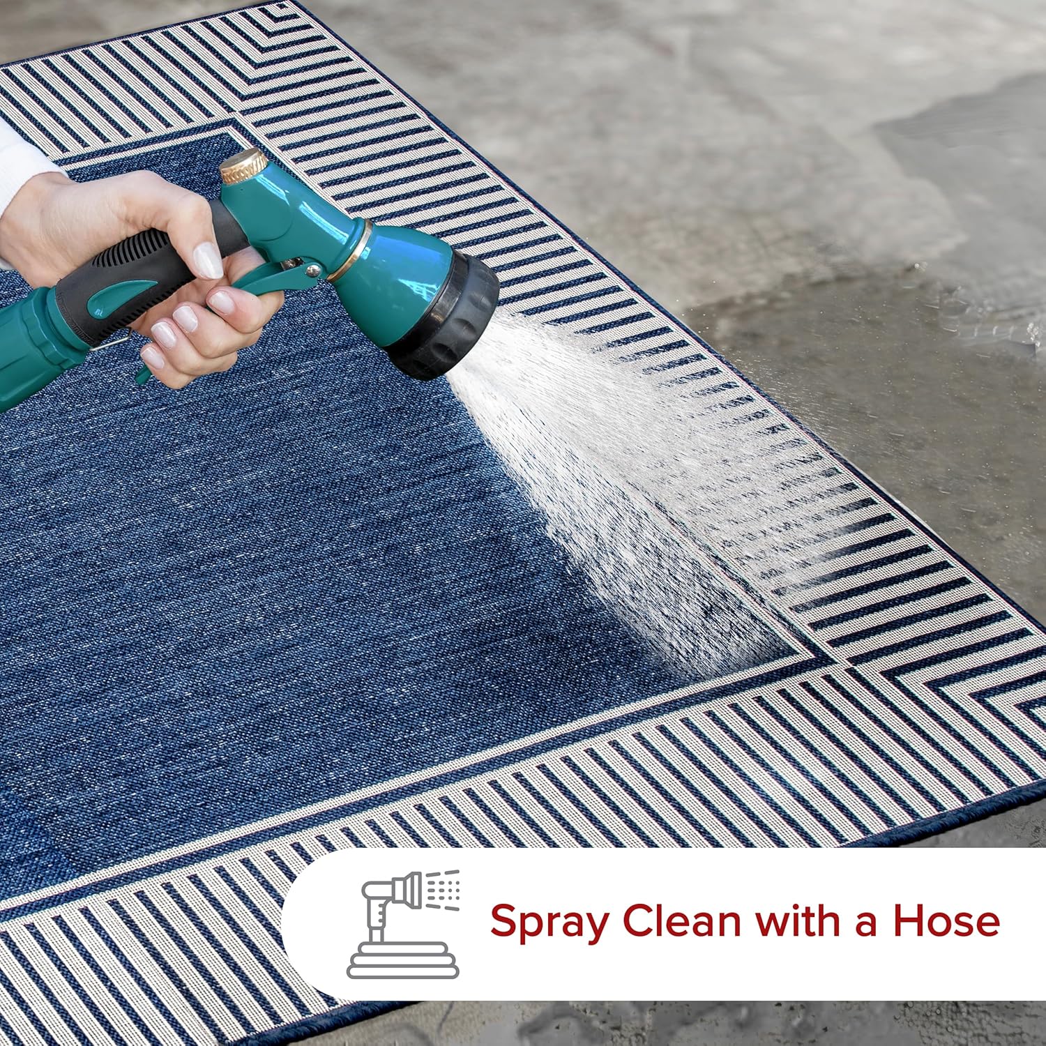 - Outdoor Rug Care Instructions: Easy to care for, simply shake out your outdoor rug to remove any light dirt or debris and spray your area rug with a hose for stubborn stains. This is the perfect patio rug or front porch rug to elevate your home.
