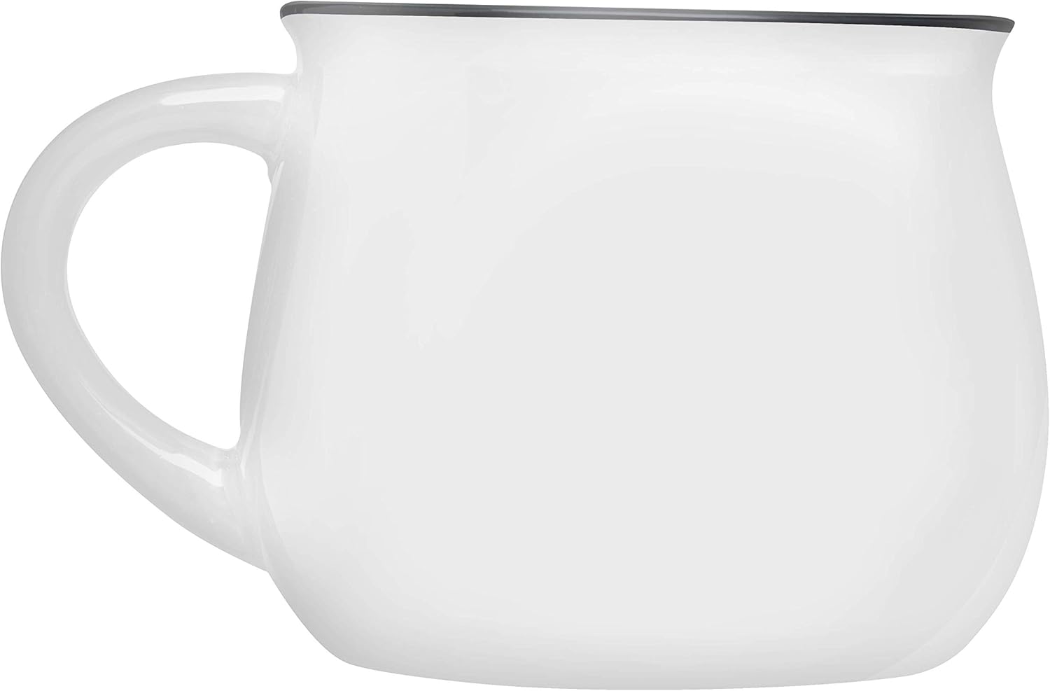 - DURABLE & COMFORTABLE DESIGN – 12 ounce Two Tone Glossy Coffee Mugs made of ceramic in the classic curved pottery style. Each medium ceramic coffee mug fits in the hand perfectly so you can enjoy your favorite hot or cold beverage. The glazed design with black rim makes for easier drinking and less spills.