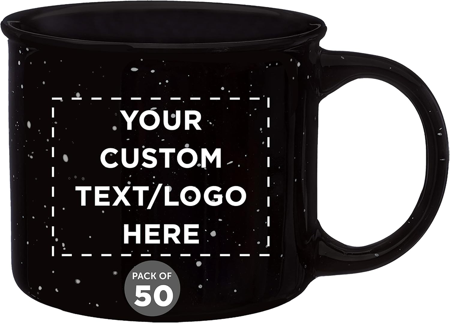 DISCOUNT PROMOS Custom Ceramic Campfire Coffee Mugs 13 oz. Set of 50, Personalized Bulk Pack - Perfect for Tea, Espresso, Cappuccino, Hot Cocoa - Black