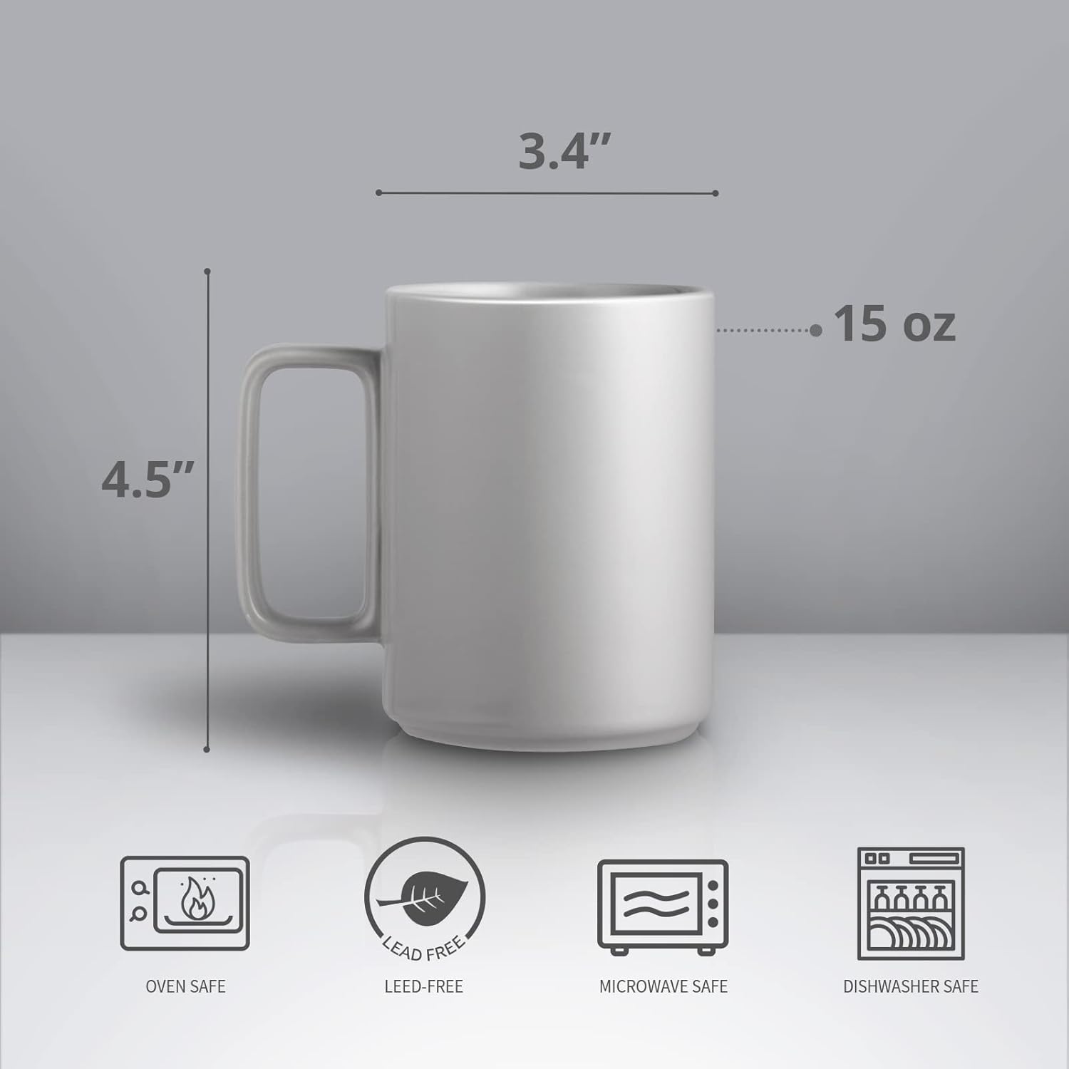 - SIMPLE, COMFORTABLE DESIGN: The clean-lined design in grey porcelain is ideal for enjoying your favorite hot pick-me-up. And the 15-ounce capacity is perfect for tea, coffee, or hot chocolate.