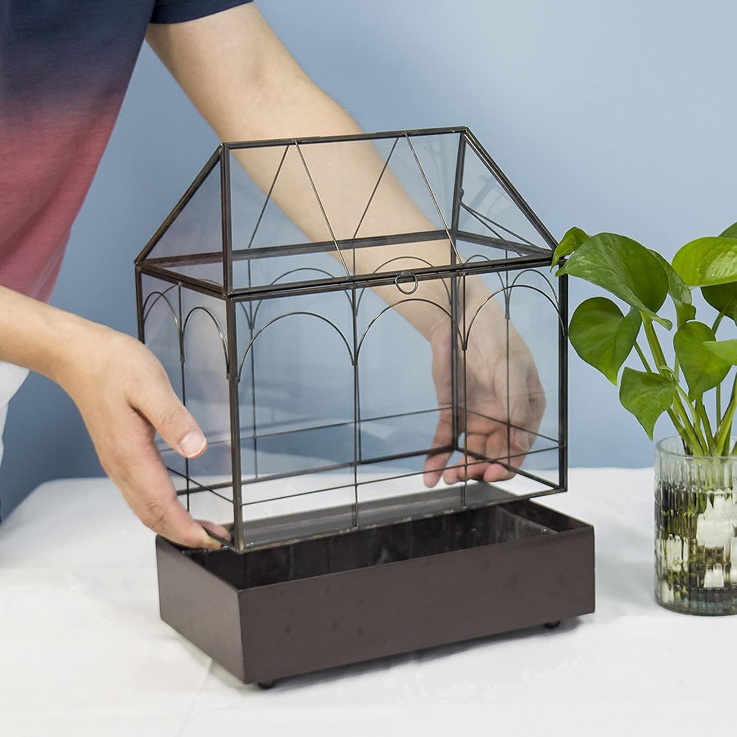 - 【Handmade】The craftsmen carefully welded the brass frame of this glass greenhouse by hand, and put the full transparent glass into the frame, thus forming a exquisite handicraft,this glass terrarium tabletop planter made of reinforced glass, super sturdy.