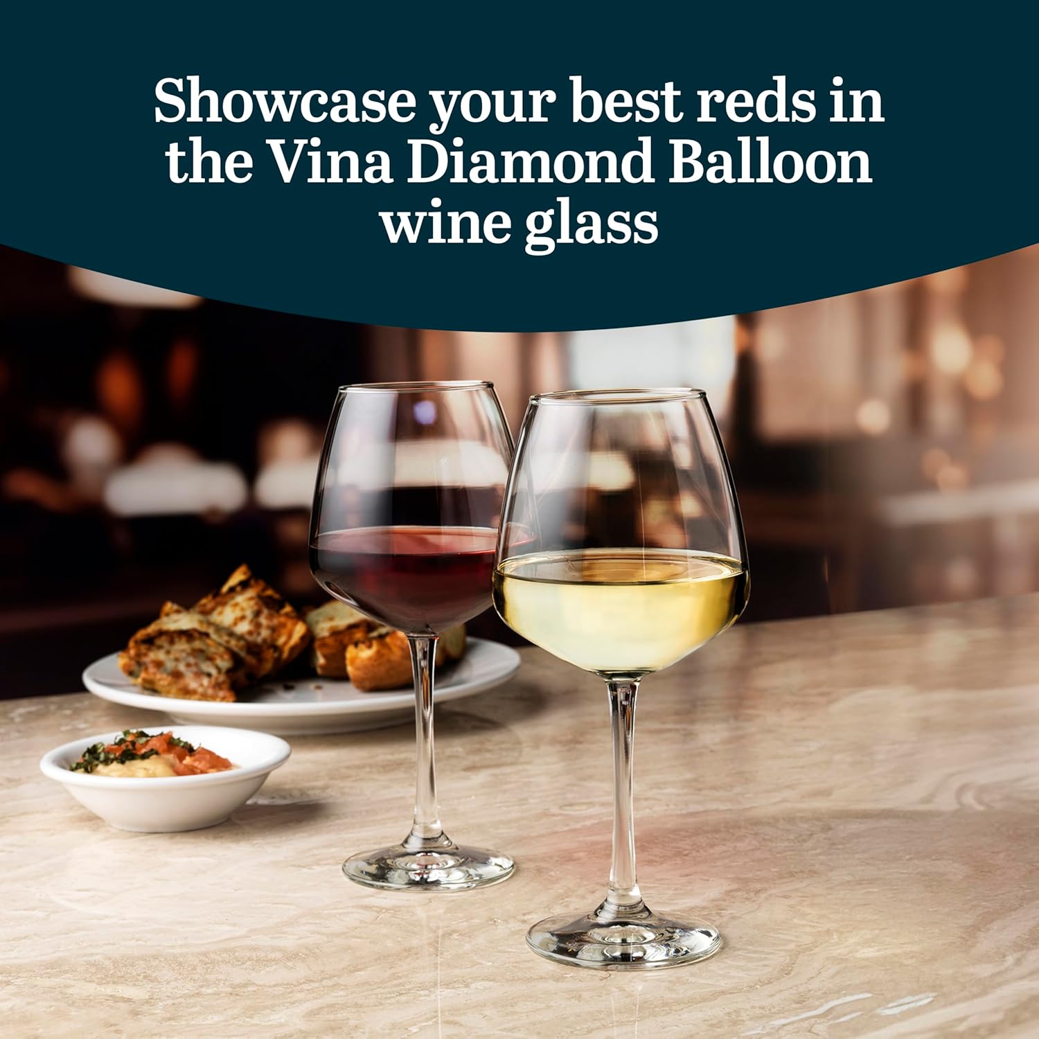Libbey Vina Diamond Balloon Wine Glasses Set, Unique Angular Red Wine Glasses Set of 12, Large, Elegant Glass Wine Glasses for Celebratory Events