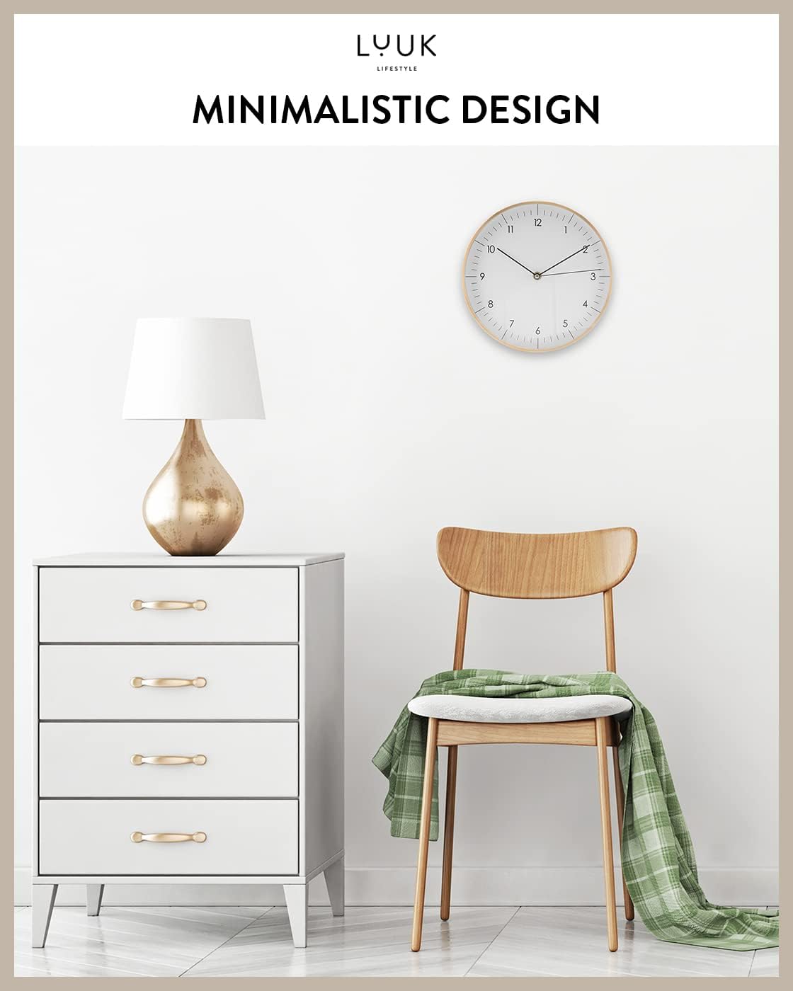 LUUK LIFESTYLE Silent Quartz Wall Clock, Nordic and Minimalist Design, Interior Decoration for Living Room, Kitchen, Bedroom, White and Gold