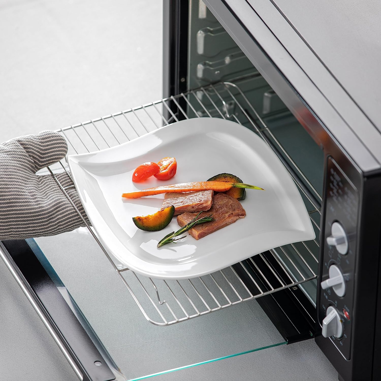 - Elegant & Multifunctional -- Our square plates and bowls set are designed in more cream and ivory colors, bringing you a warmer and more relaxing time while cooking. The white dish set are ideal for family get-together, parties, restaurant, formal banquet. Also, you can make this as gift for housewarming, wedding, Mother's day etc.