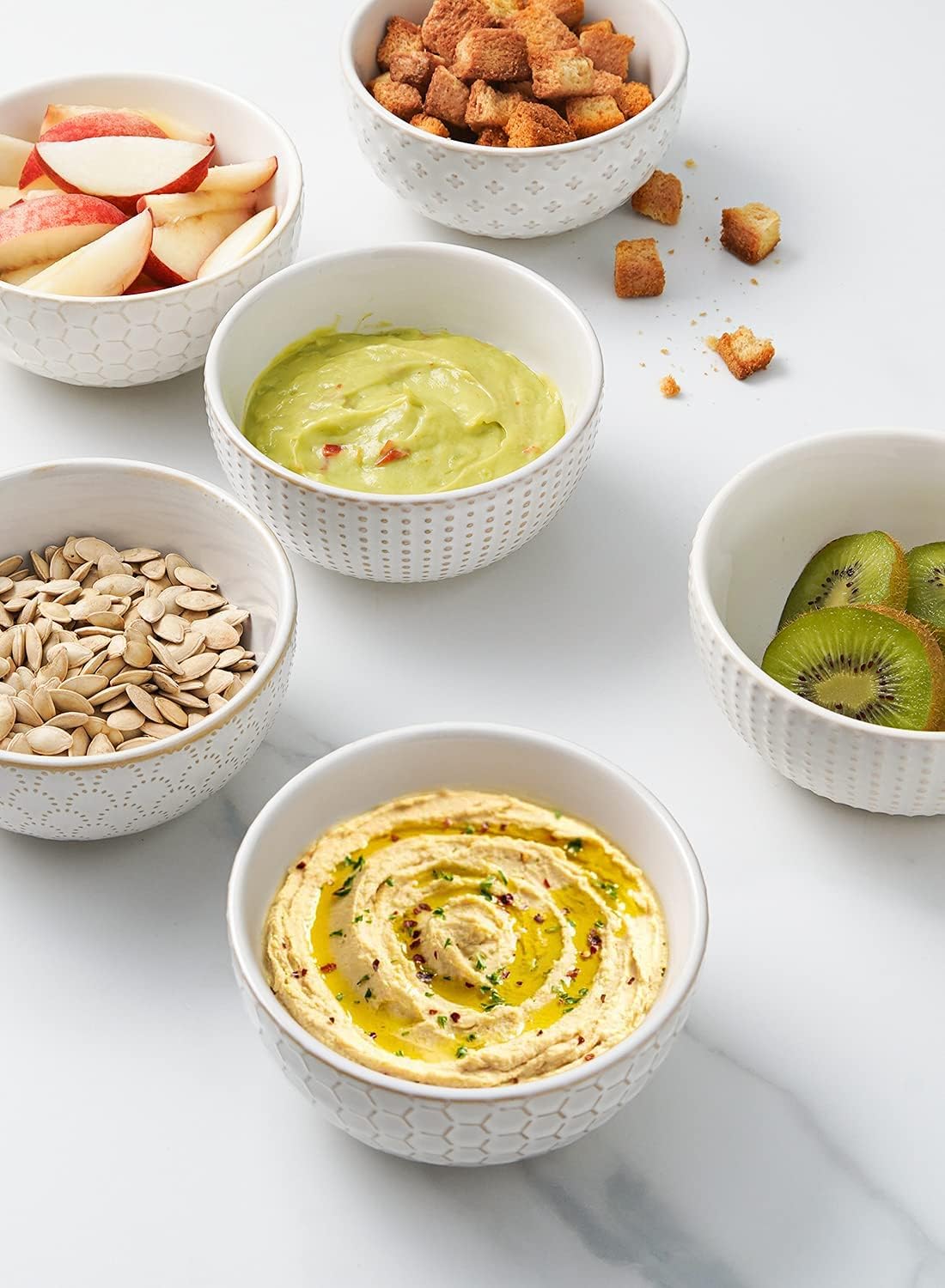 - House Warming Present Idea: Each bowl has a different pattern embossment. The outside of the bowl is embossment. The inner glaze is a smooth ceramic surface. New homeowners will like the timeless farmhouse look of these bowls