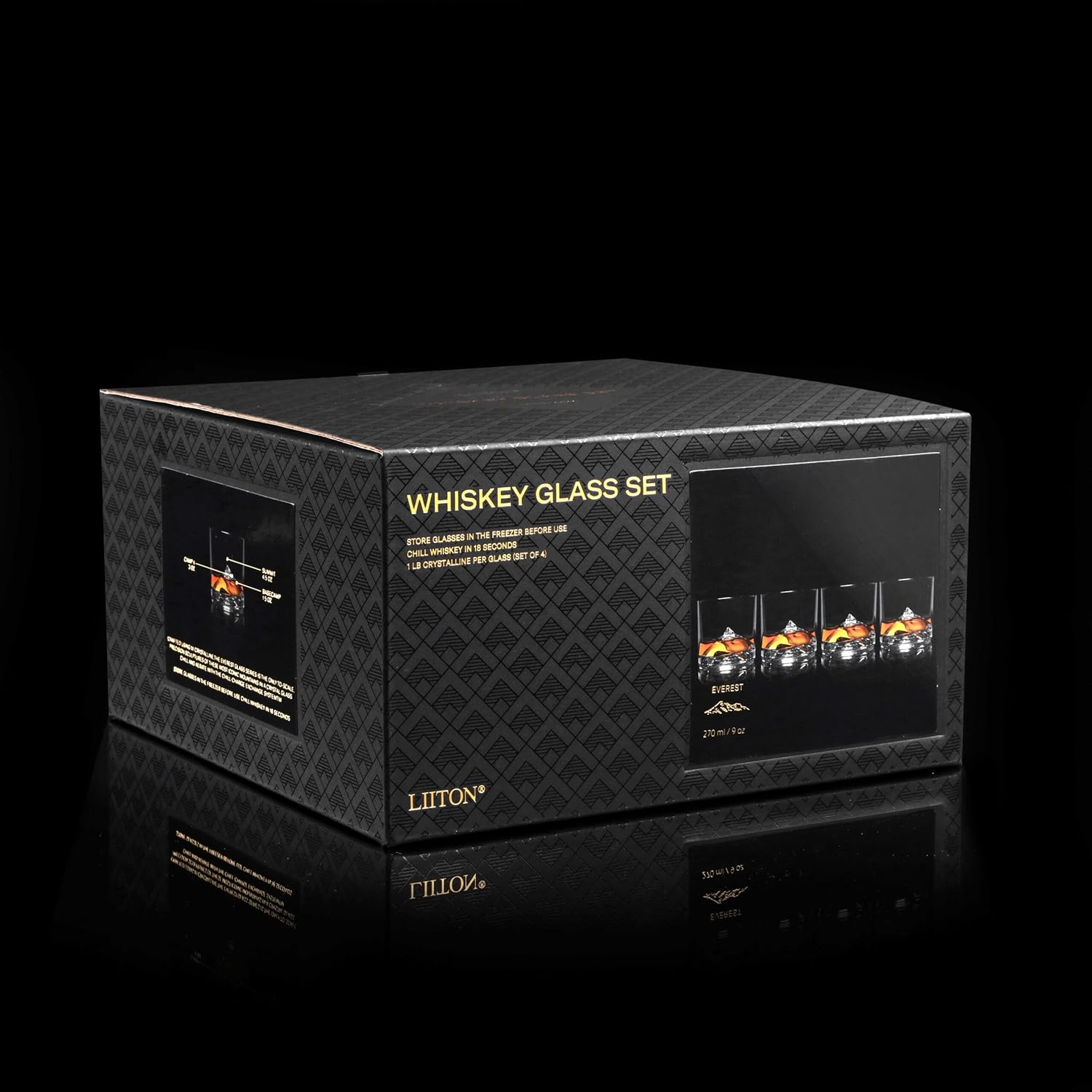 Mount Everest Heavy Crystal Whiskey Glasses Gift Set of 4, Thick Freezable Bourbon Glass 1lb Each, Premium Whiskey Gifts for Men, Frozen Crystal Chills Cocktails, 10 oz
