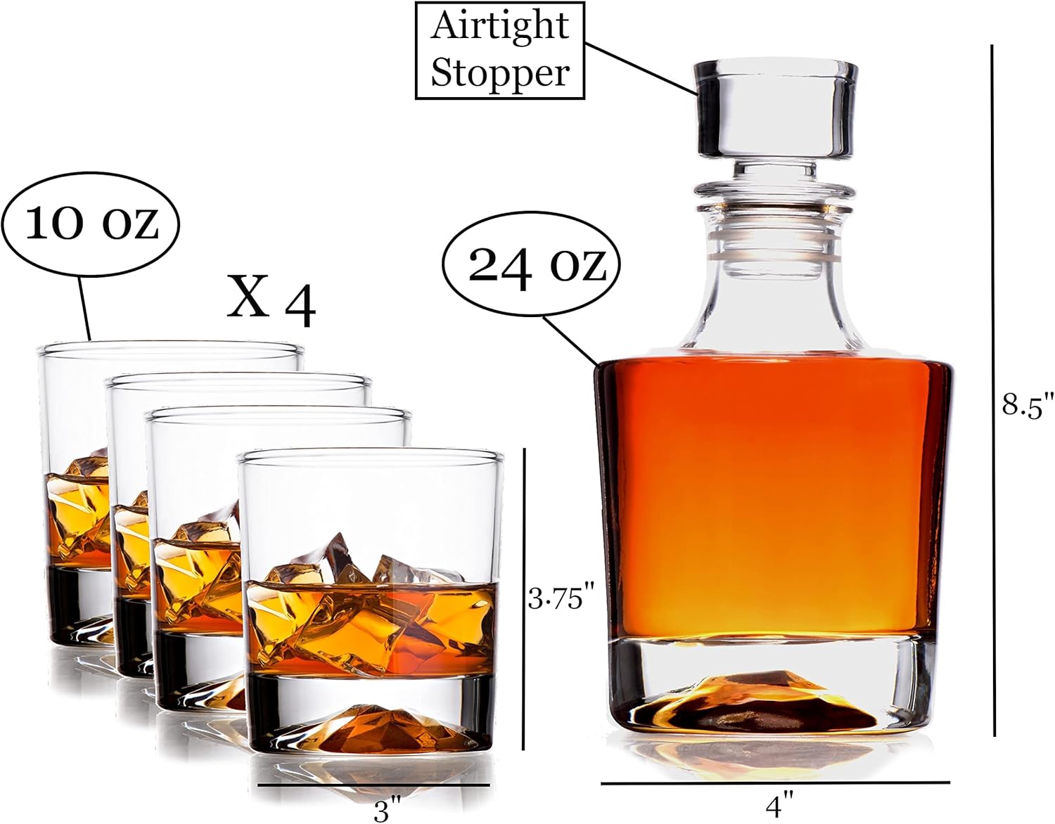 - 🎁 Unique Design - A vibrant Mountain imprinted design on the bottom of this whiskey glasses and Decanter creates a classic look with a modern touch. Whether you are sitting back enjoying a relaxing evening or hosting friends and family, this glass is sure to catch everyone’s eye!