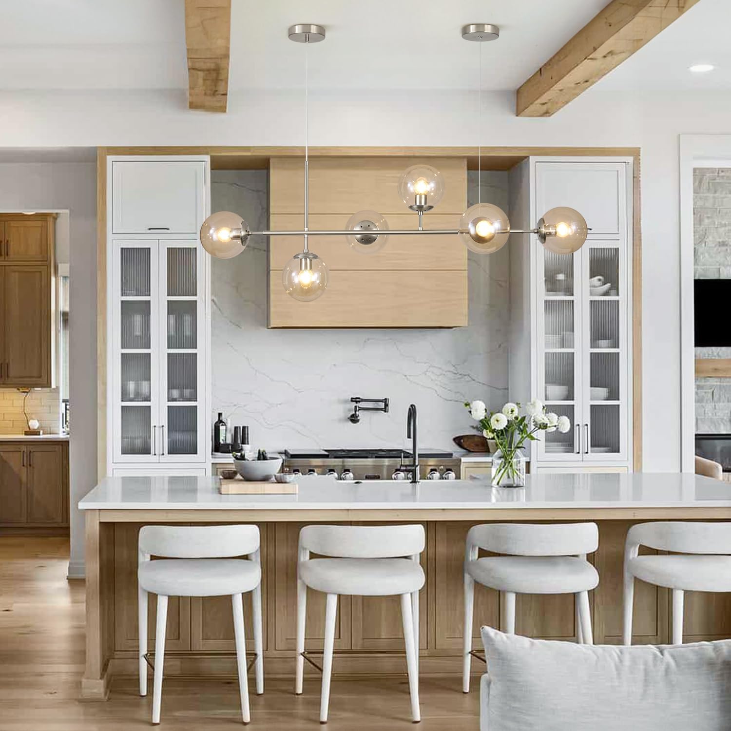 - Dining Room Light Fixture Application: The industrial hanging light emits ample glow to light up the whole space, no dark end. This 6-lights globe linear chandelier is suitable for kitchen island, dining room, kitchen sink, foyers, hallway, bedroom, living room, cafe, restaurant, study room. Itās definitely the best choice for your home lighting