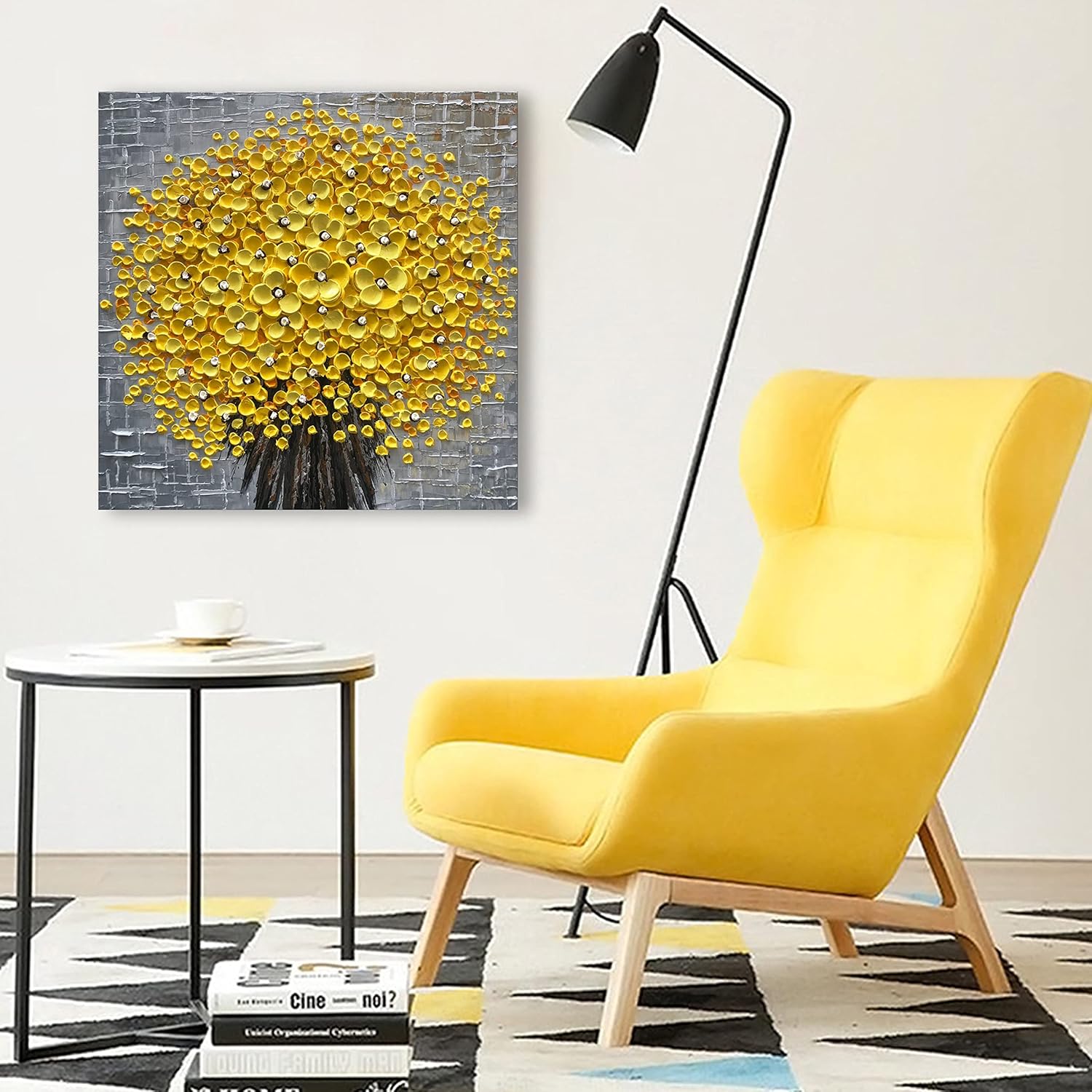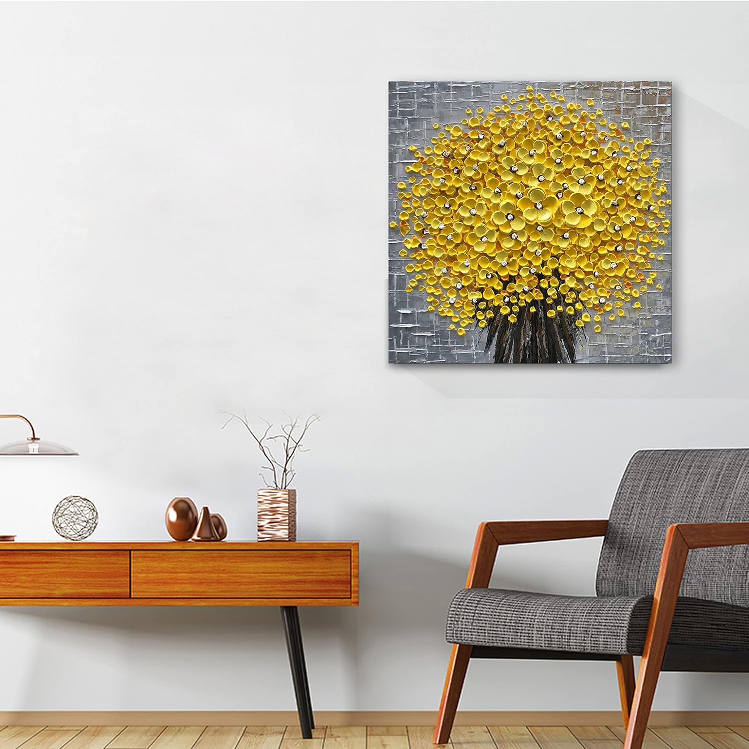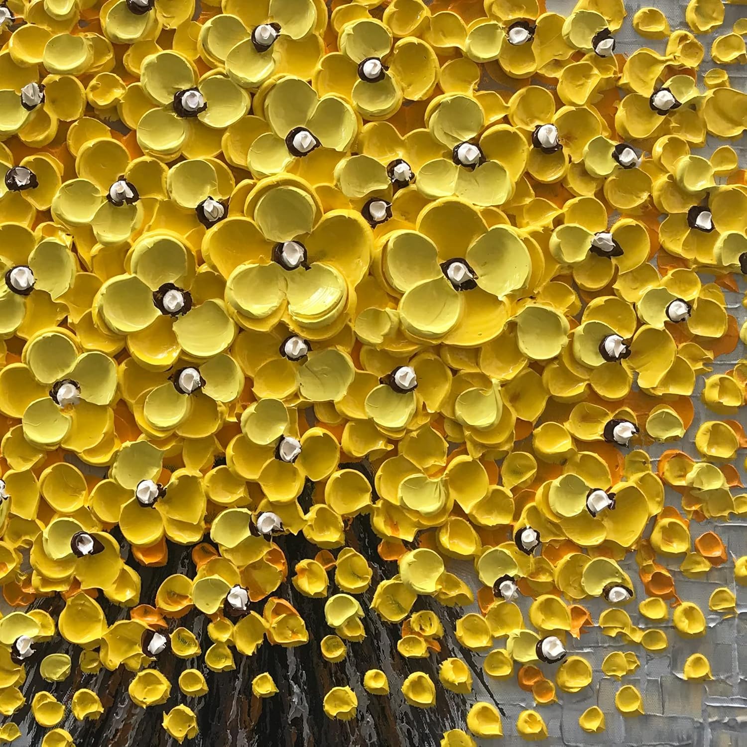 Epicler 24x24 Inch Hand-Painted 3D Yellow Flower Art Oil Painting, Modern Flower Canvas Wall Painting, Contemporary Abstract Canvas Oil Painting Home Wall Decoration