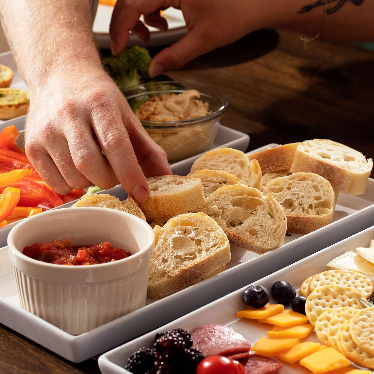Home Beets White Ceramic Serving Platters (14 x 6 Inch Rectangle Plates) Serving Dishes for Entertaining, Food, Appetizers, Desserts, Cheese Board, Charcuterie, Sushi - Set of 4 Party Serving Trays