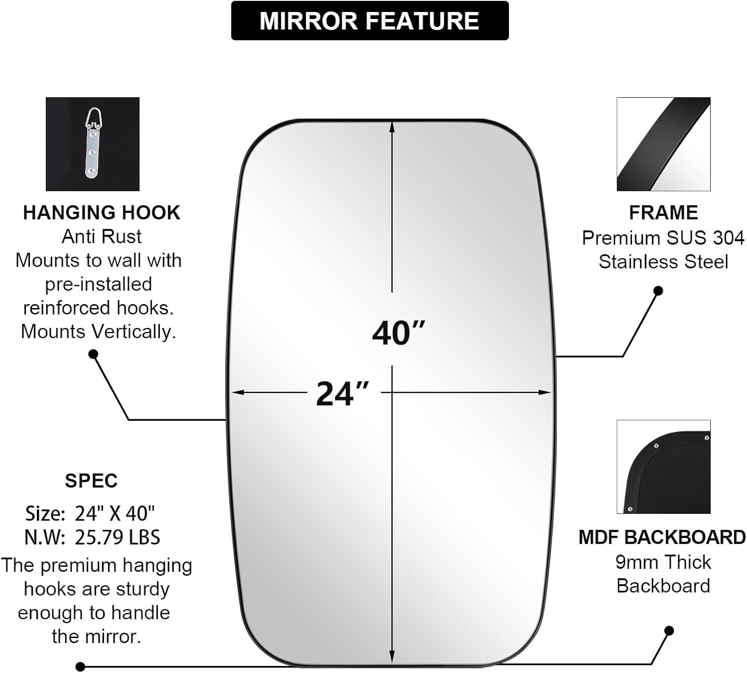 - Maximize Limited Wall Areas: Maximize your bathroom's wall space with the 24 x 40 inch mirror. Its versatile size and clear, distortion-free reflection make it perfect for narrow spaces, offering both practicality and aesthetic appeal in confined areas