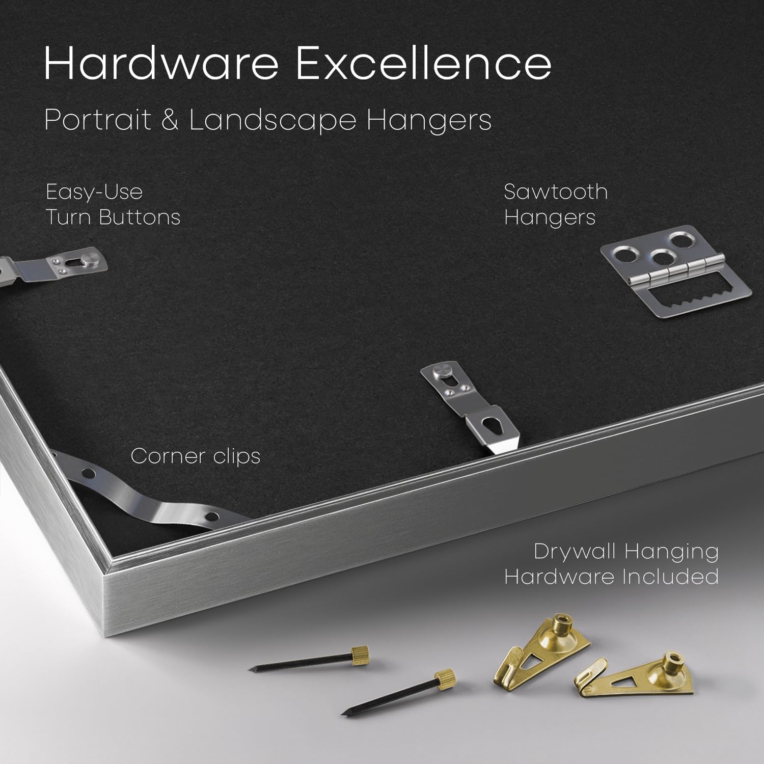 Homeforia 11x14 Picture Frame Silver, High End Metal 11x14 Frames with Mat 8x10, 11 x 14 Silver Poster Frame Matted to 8 x 10 inch Photo, 11by14 Thin Hanging Frames, Tempered Glass, Wall Kit, Set of 1