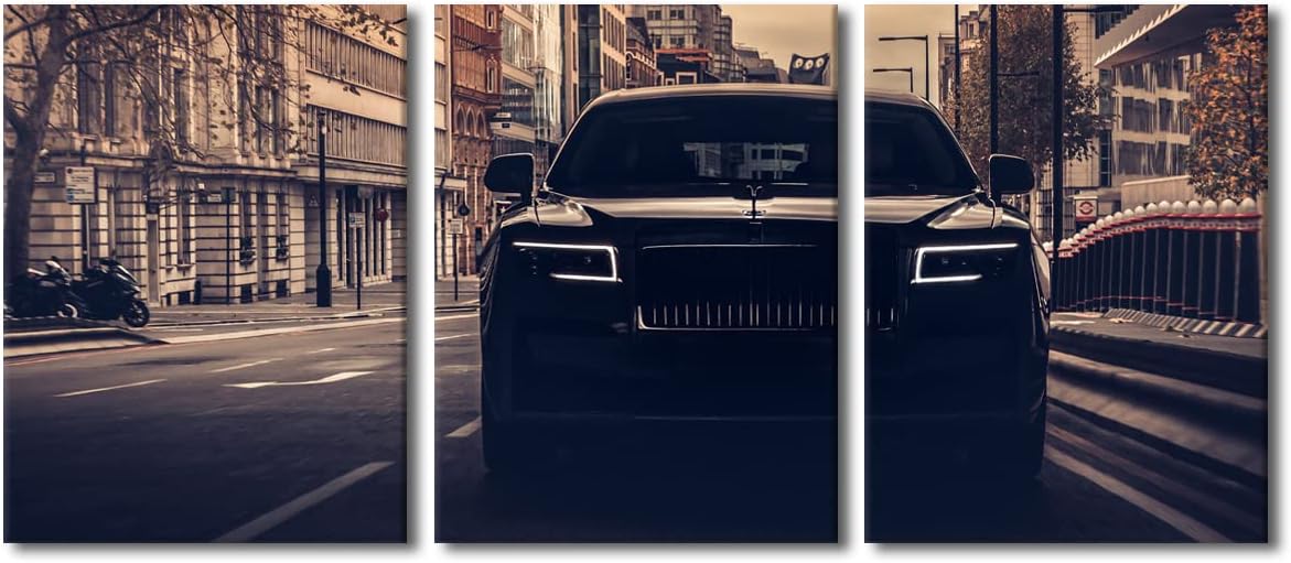 TUMOVO Canvas Prints Vintage Wall Art Modern Home Decor Black Sports Car Poster Living Room Men Boys Bedroom Decoration 3 Pieces Famous Car Retro Artwork Painting Framed Ready to Hang, 36" Wx16 H