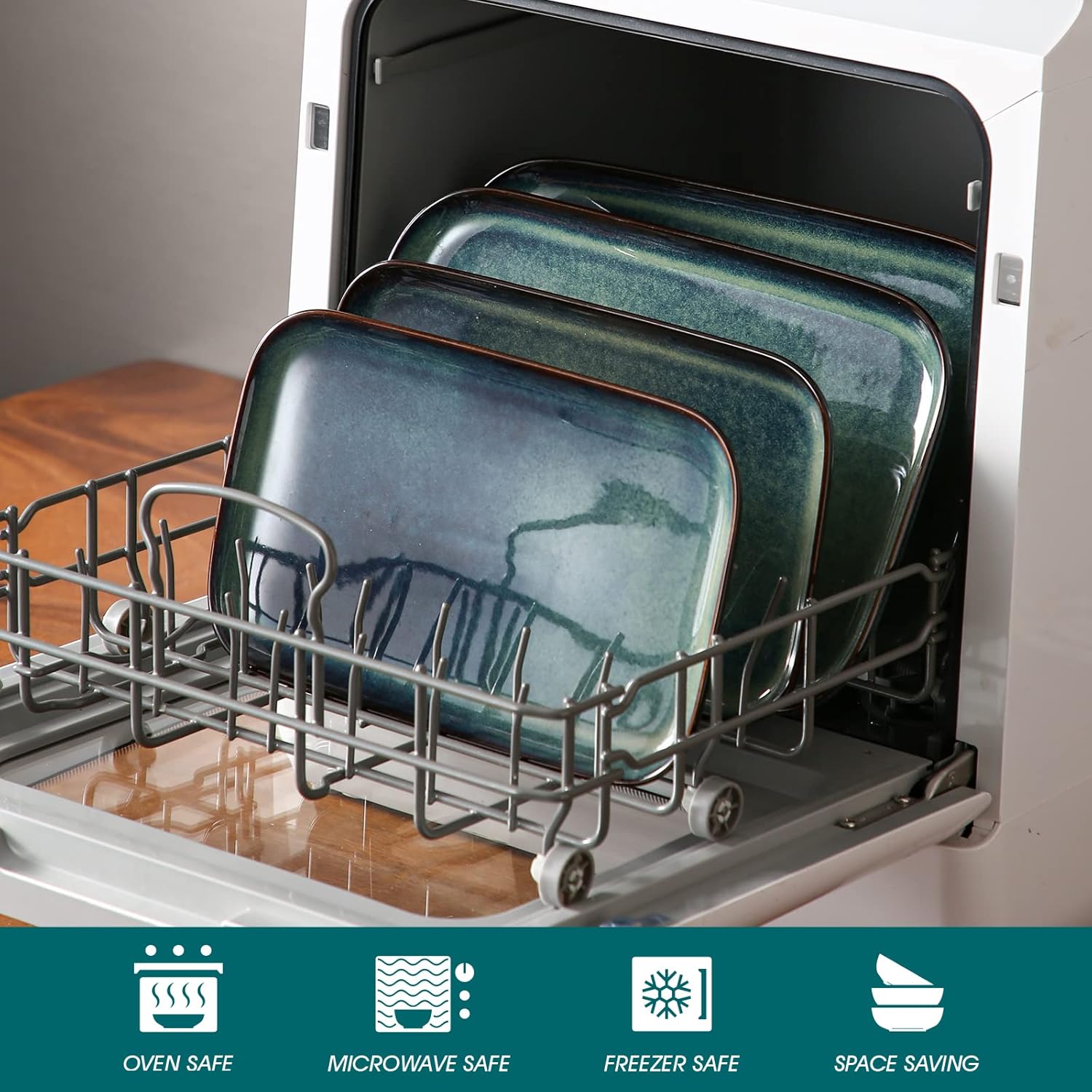 vancasso Stern Serving Platters Set of 3, 15/13/ 11 Inches Rectangular Serving Plates, Green Serving Trays for Entertaining, Party