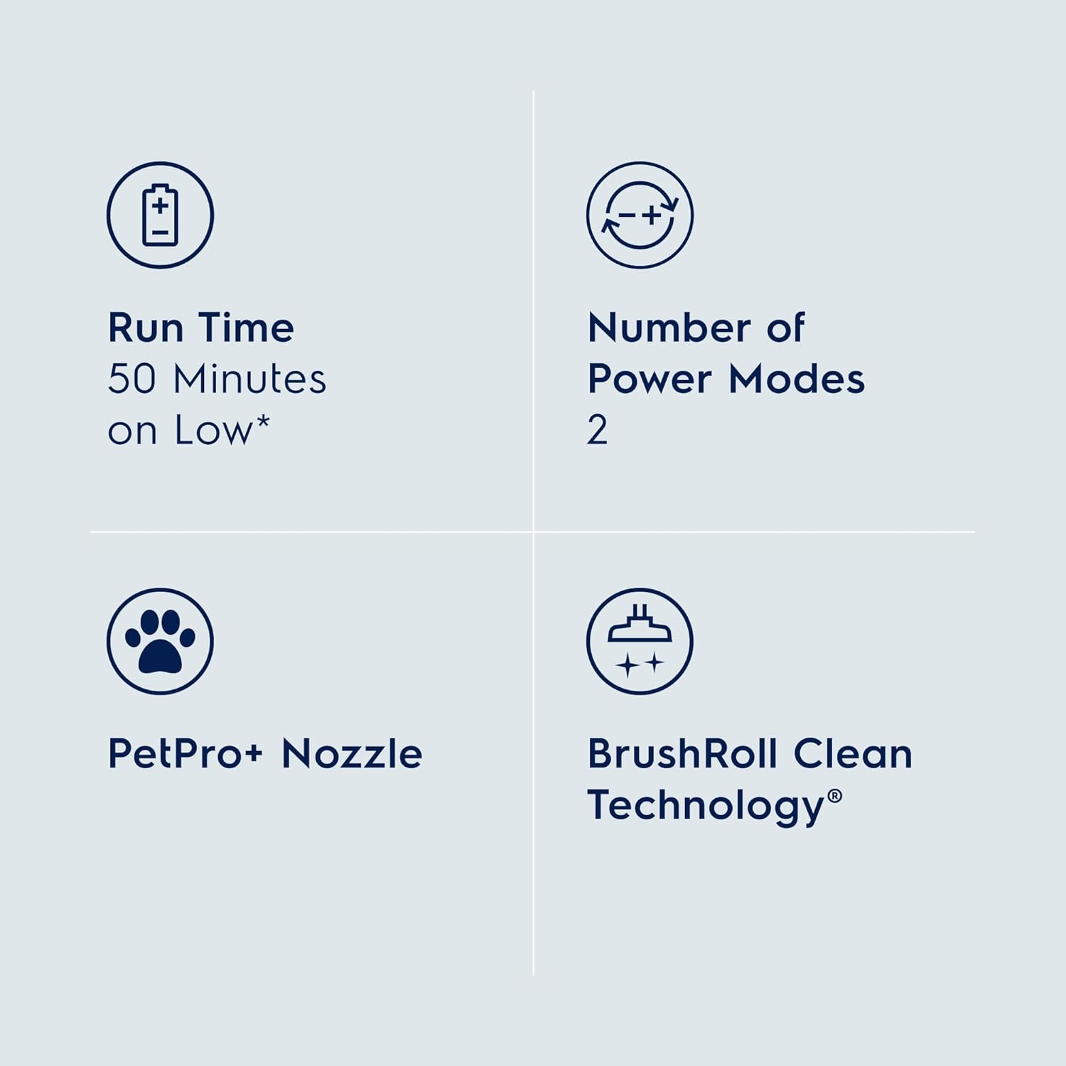 - Long-Lasting Cordless Power: Enjoy up to 50 minutes* of run time with the high-performance battery, providing consistent cleaning power without needing to recharge