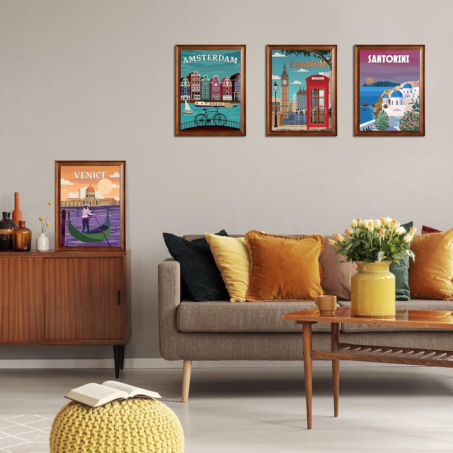 - Package Includes: these vintage travel city posters are unframed and have 9 assorted styles, and equipped with 2 sheets (40 pieces) adhesive dots, enough quantity for you to decorate your room, our travel wall art set provides make a nice housewarming gift for a new house, a refreshed apartment or a freshly decorated dorm, these travel city paintings are delicate posters for the room and nicely set the tone of your room