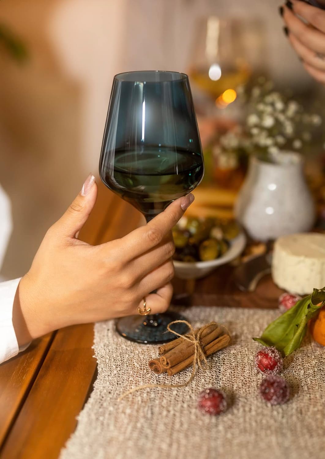 - ELEGANT DEEP BLUE TONE – Bold midnight blue glass adds richness and depth to any table or bar setup