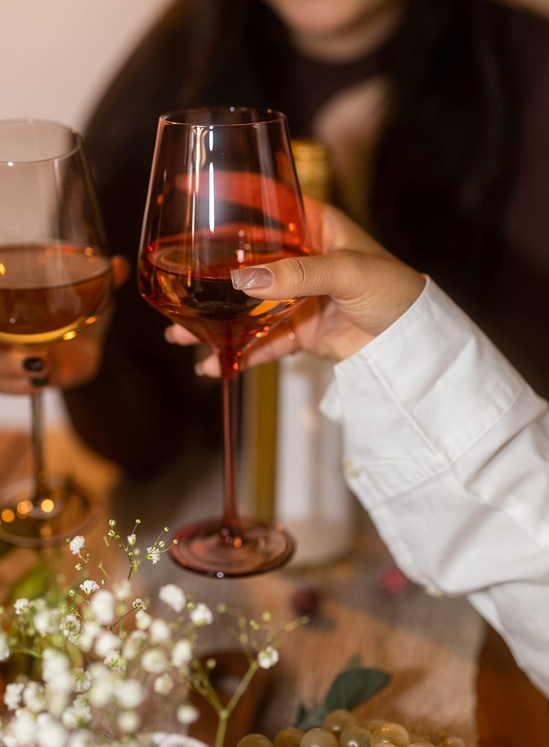 Saludi Original Dark Rose Wine Glasses, 16.5oz (Set of 6) Stemmed Single Color Red Barbie Glass - Great for All Wine Types and Occasions or Gifts - Luxury, Durable, Hand-Blown