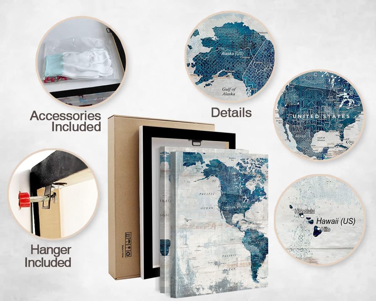 Elixart Wall Art for Living Room Office Wall Decor Pictures for Bedroom World Map Art Large Kitchen Decor 48"X24" Motivational Painting for Dining Room Wall Decorations
