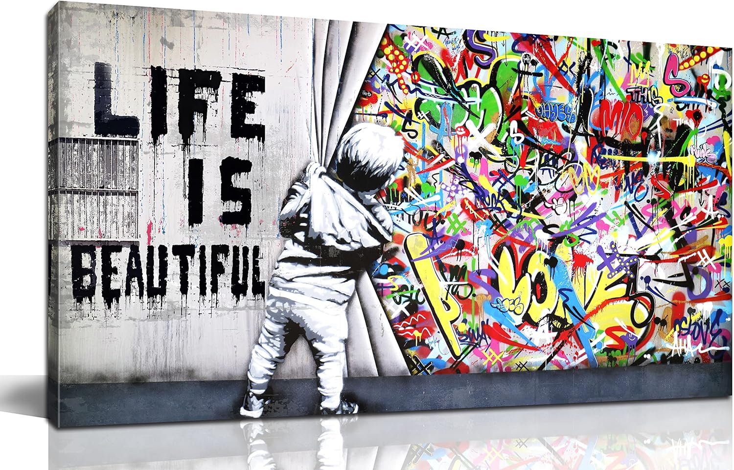 - 【CANVAS WALL ART SIZE】 Size is 40" x 20" Graffiti canvas art wall decor colorful wall decor bedroom decor for teen boys