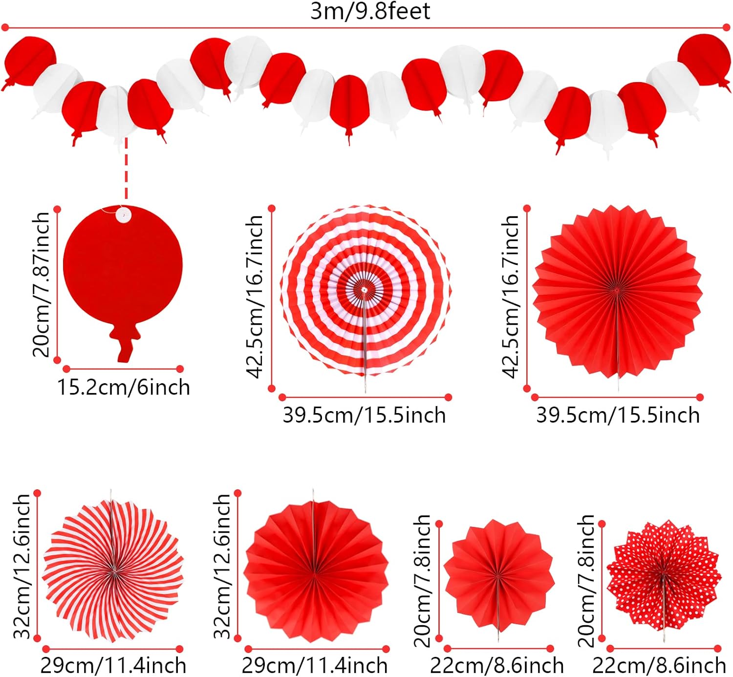 Red Party Decorations, Papar Fans Pompoms Fans Garlands for Birthday Bridal Baby Shower Wedding Graduation New Years Valentine's Day Party Decorations