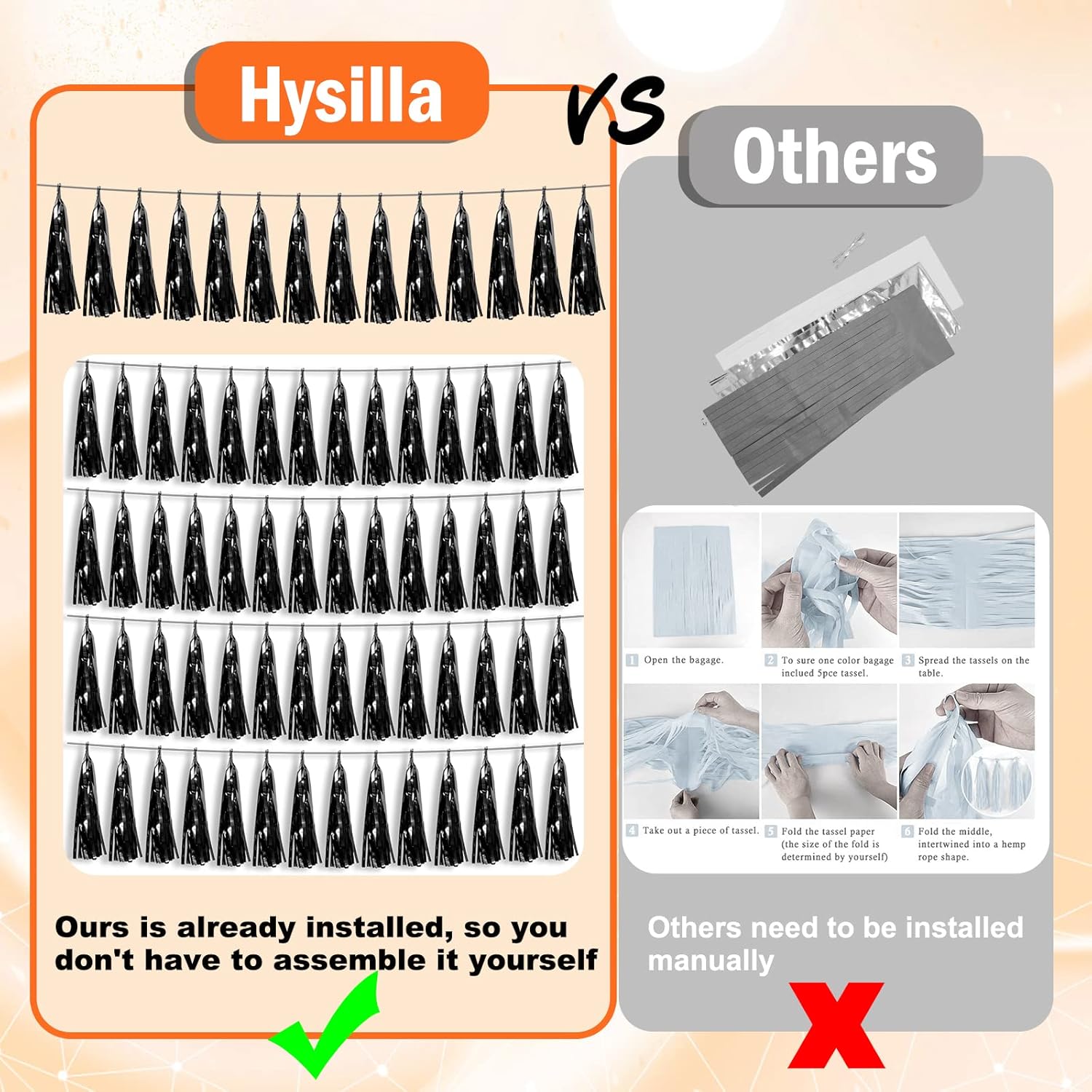 - 【Black Party Supplies Set】: The total length of the black birthday tassels banner is 26.2 feet, divided into 4 strips, each 6.5 feet long. Each banner contains 15 tassels, and each tassel measures 14 inches, for birthday decorations many occasions, and so on