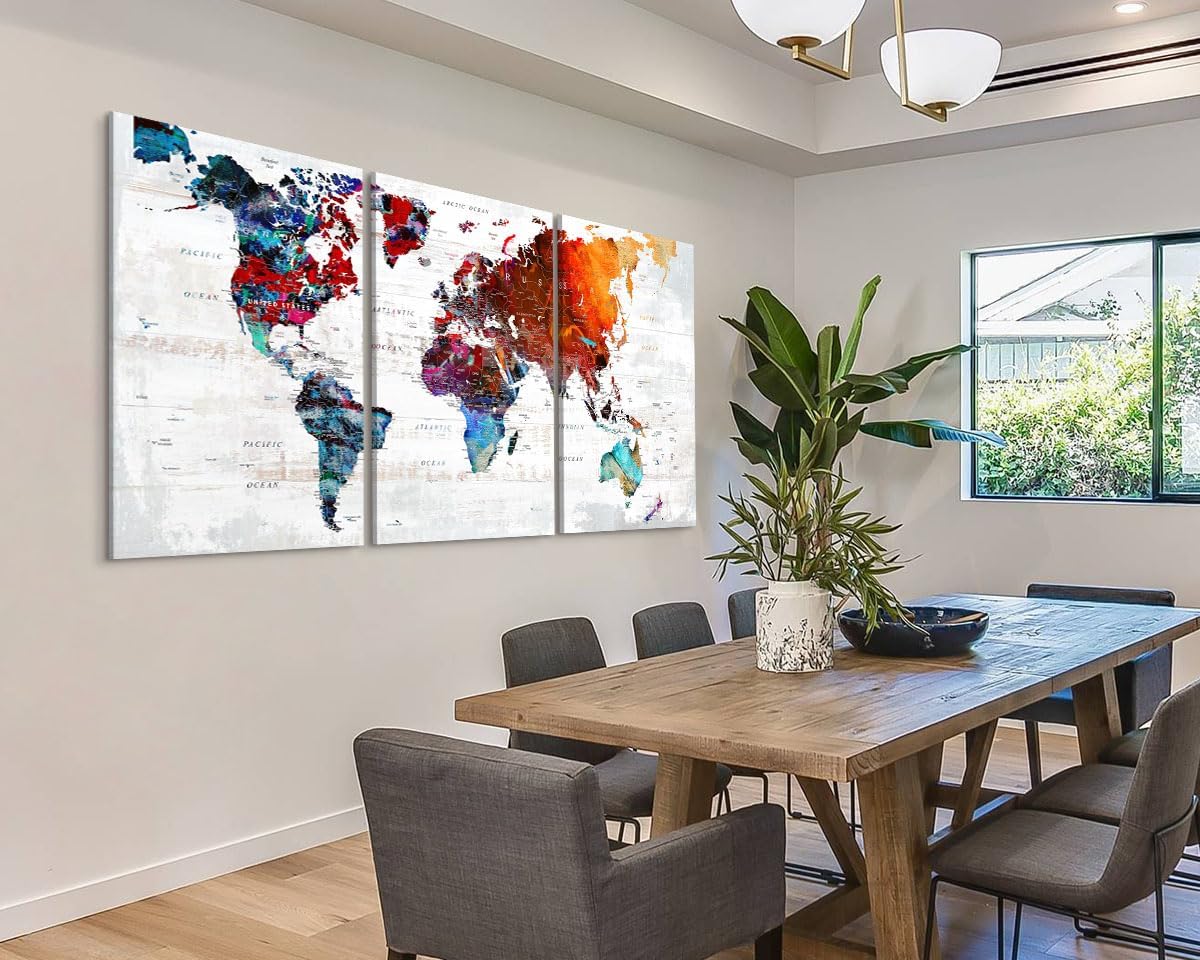- DECORATIVE MAP - Professionally printed works of art on quality canvas. Each panel is 23.6" by 35.4", set of 3, the overall size is 70.8" x 35.4"