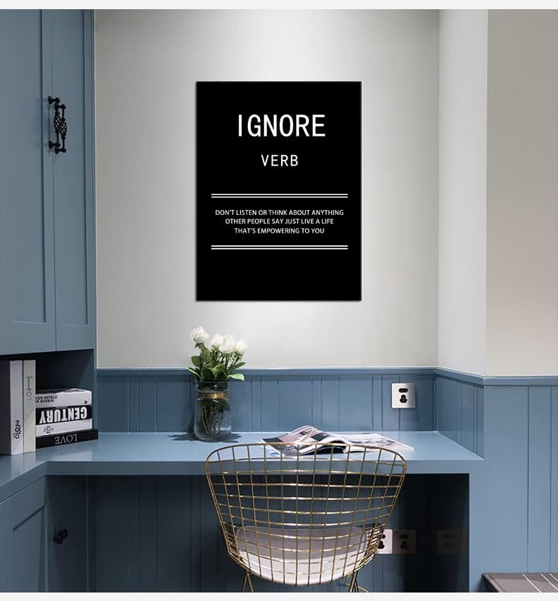 WYJZDZQ8 Inspirational Canvas Wall Art for Office Ignore Verb Motivational Poster Picture Painting Modern Inspiring Positive Artwork for Home Living Room Bedroom Decor Ready to Hang [18''W x 24''H]