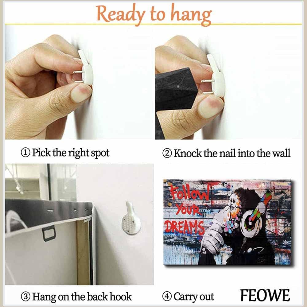 Framed Banksy Graffiti Canvas Wall Art Follow Your Dreams Monkey Poster With Headphones Prints Street Painting Picture Man Cave Wall Decor Pop Art for Living Room Ready To Hang 16"Wx 24"H (40x60cm)