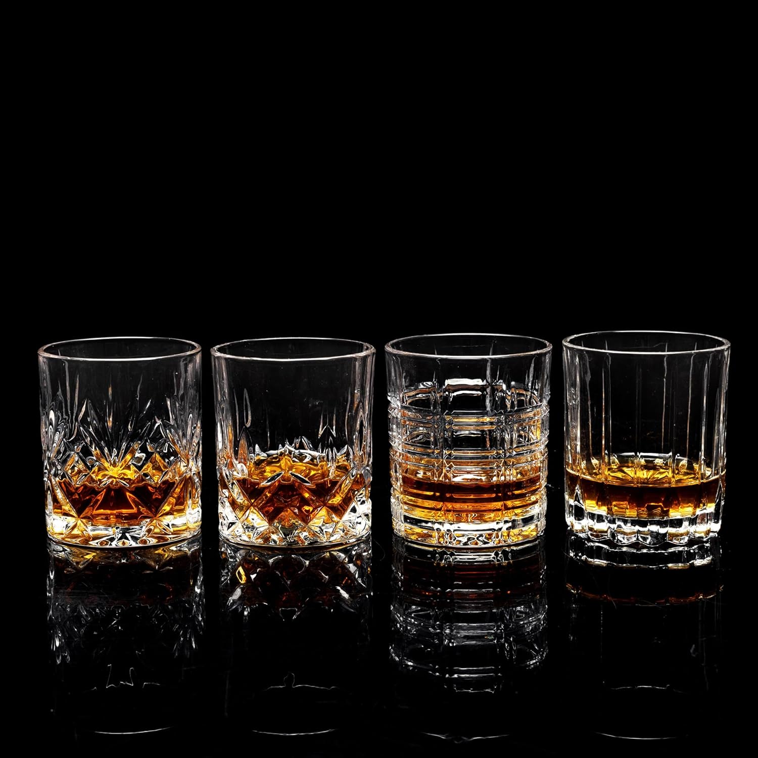 KANARS Whiskey Glasses Set of 4 - Multi Style Crystal Liquor Glasses 10 oz - Rocks Glass Barware For Scotch, Bourbon, Rum and Cocktail, Whisky Gifts for Men