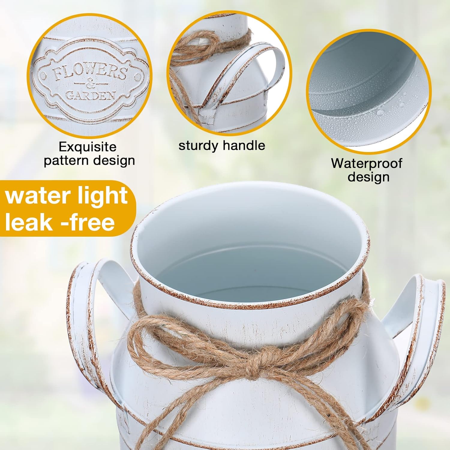 - Quality Material: the milk can vase is crafted from galvanized metal, ensuring durability and robustness; Its composition assures you of a product that's not just visually appealing, but also efficiently resistant to easy wear and tear