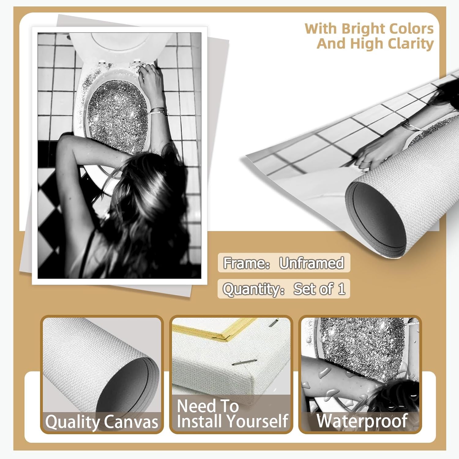 Liyark Funny Bathroom Wall Art Black and White posters Bar Disco Party prints painting Girls Bathroom Canvas wall art Funky aesthetics Teen Girl Bedroom wall decor for 24x36in Unframed