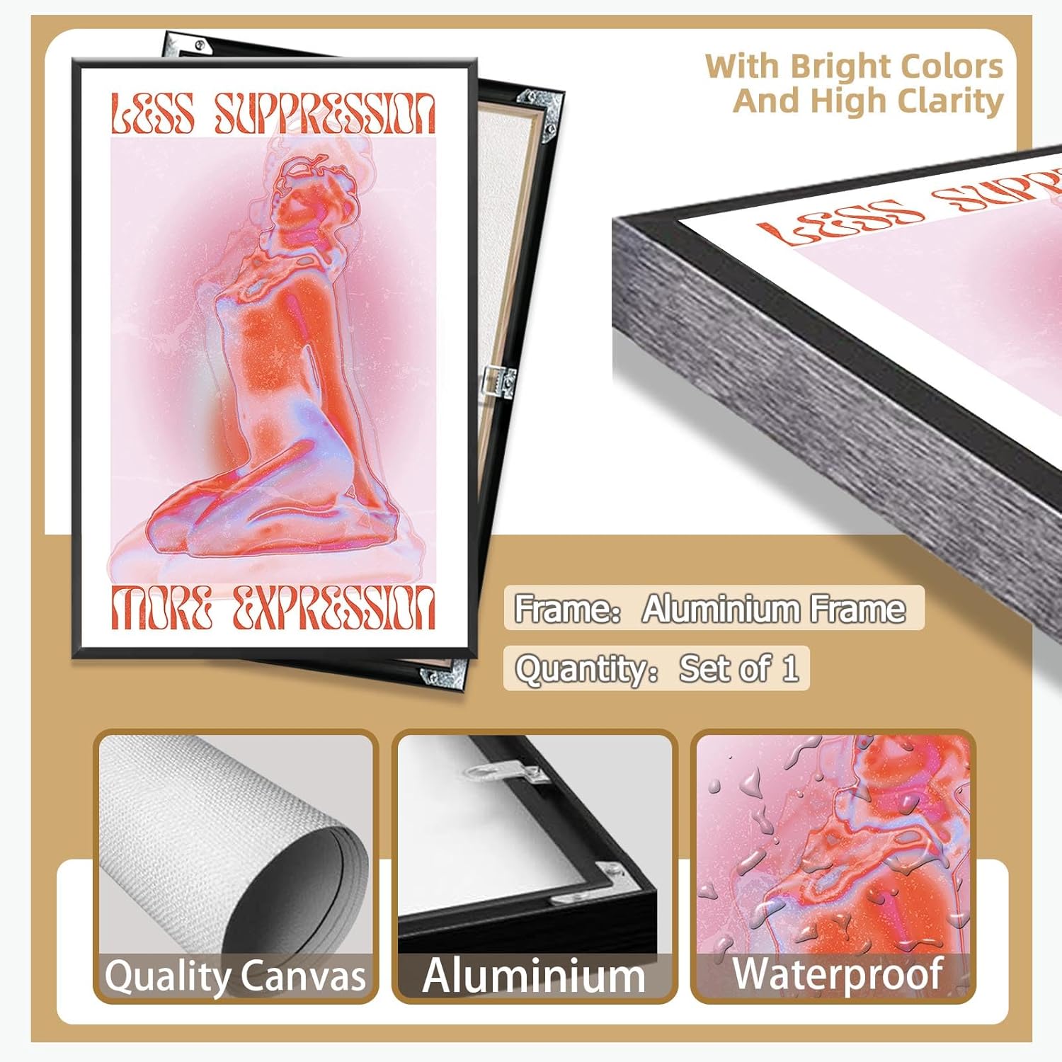 Spiritual Affirmation Art Poster Pink Woman Canvas Wall Art Aesthetic Pictures Sexy Woman Prints Painting Trendy Gradient Aesthetic Wall Decor Living Room Bedroom 24x36in Framed