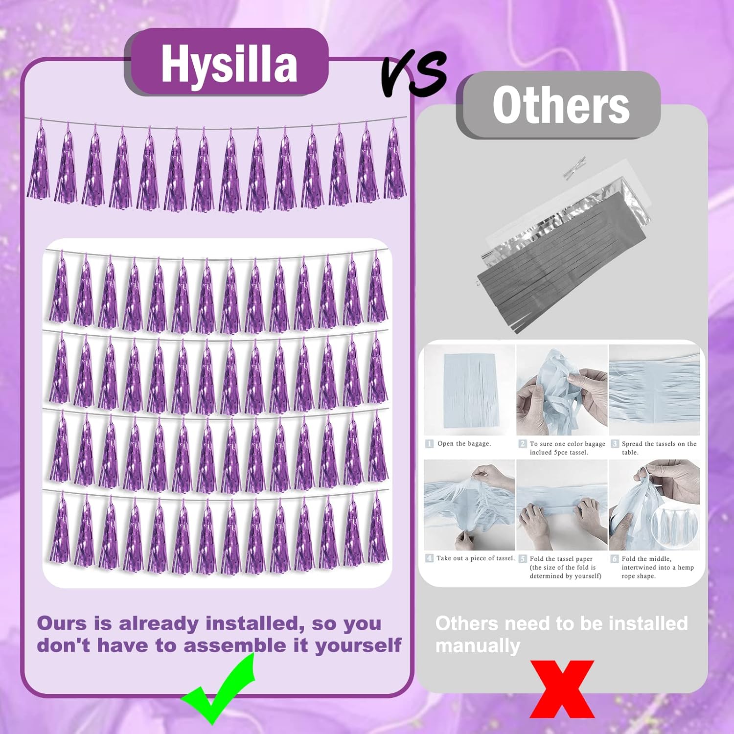 - 【Perfect Party Decoration】The light purple tinsel garlands are designed in a metallic Fringe, bright, and beautiful, at the same time, they shine in the sun, and these gorgeous tassel garlands create a wonderful backdrop or centerpiece for your party space. and bring you, your family, and your friend's good Visual effects. your party many emotional and touching moments where a lot of pictures will be taken and everybody will have a wonderful time together.