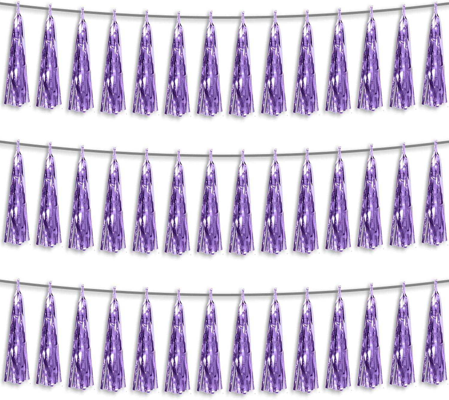 3P Light Purple Foil Fringe Metallic Tassel Streamers Banner Tassel Garland for Parade Floats, Bachelorette, Wedding, Birthday, Halloween, Christmas, Bridal/Baby Shower Party Decorations