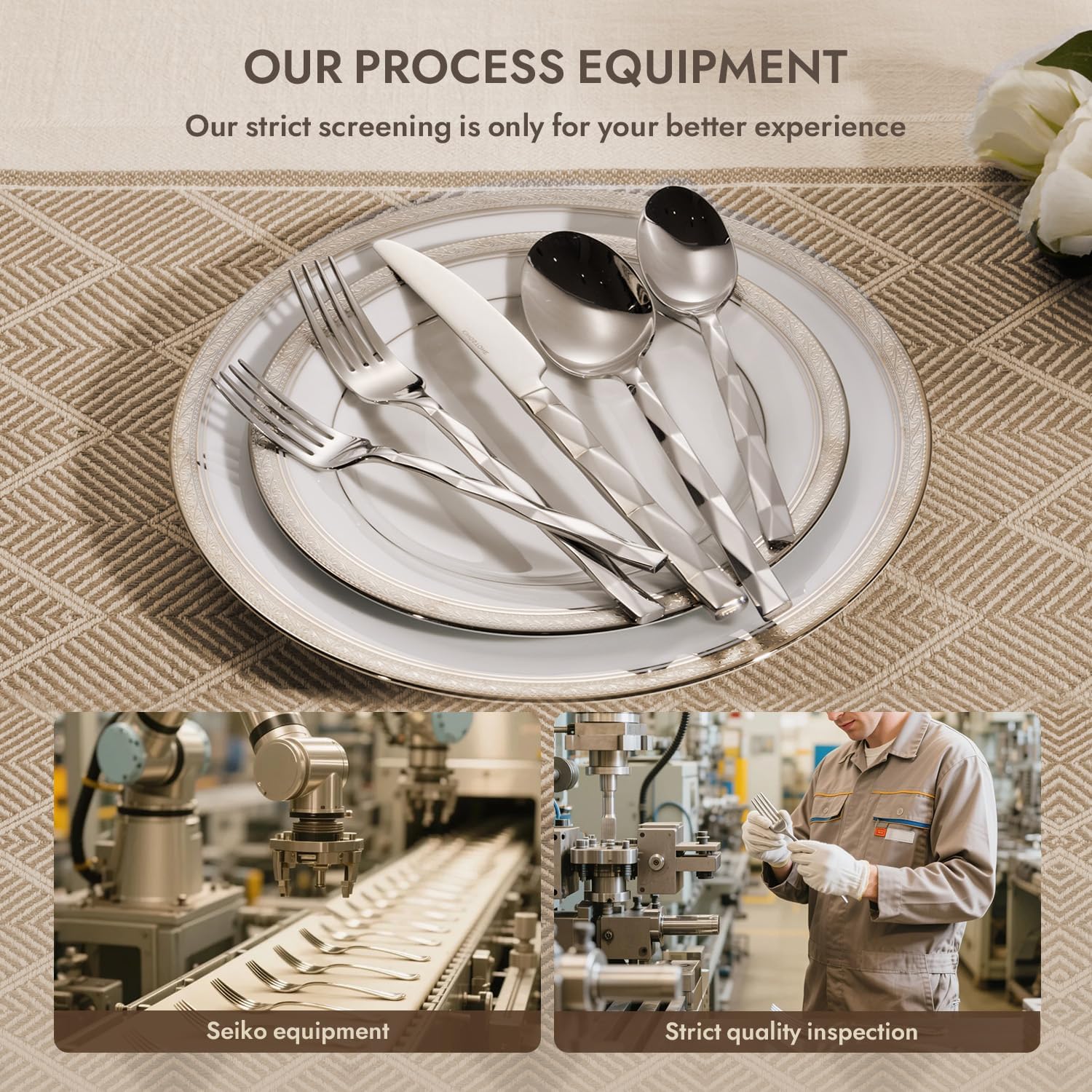 - LUXURY DSEIGN: The handle like a diamond cut design gives the flatware set a sense of luxury, and makes the tableware appear more shining. Luxury design would elevate everyday meals into a fine dining experience.