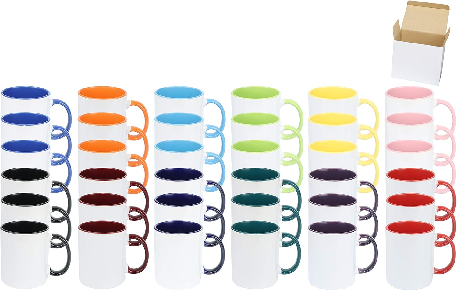 11oz White Ceramic Sublimation Coffee Mug in White Gift Box, 12 Mixed Colors, Case of 36