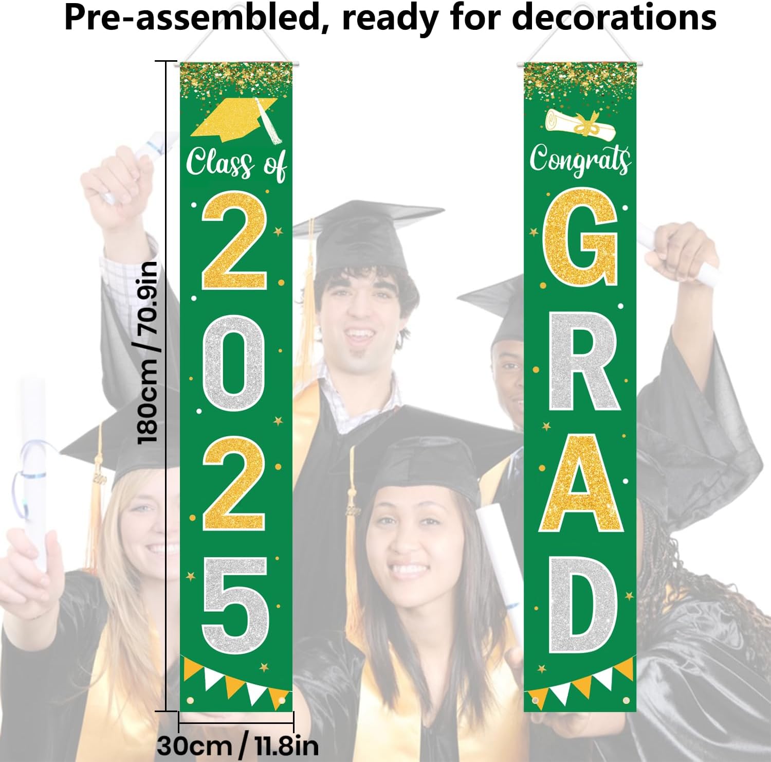 Graduation Decorations 2025 GRAD Banner Green Porch Door Sign Welcome Banner For Indoor Outdoor Wall Graduation Decorations Class of 2025