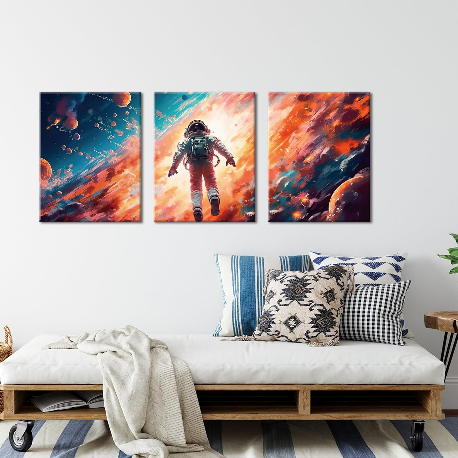 Galaxy Canvas Prints & Posters - 3 Panel Framed Astronaut Artwork for Boys Bedroom & Home Decor