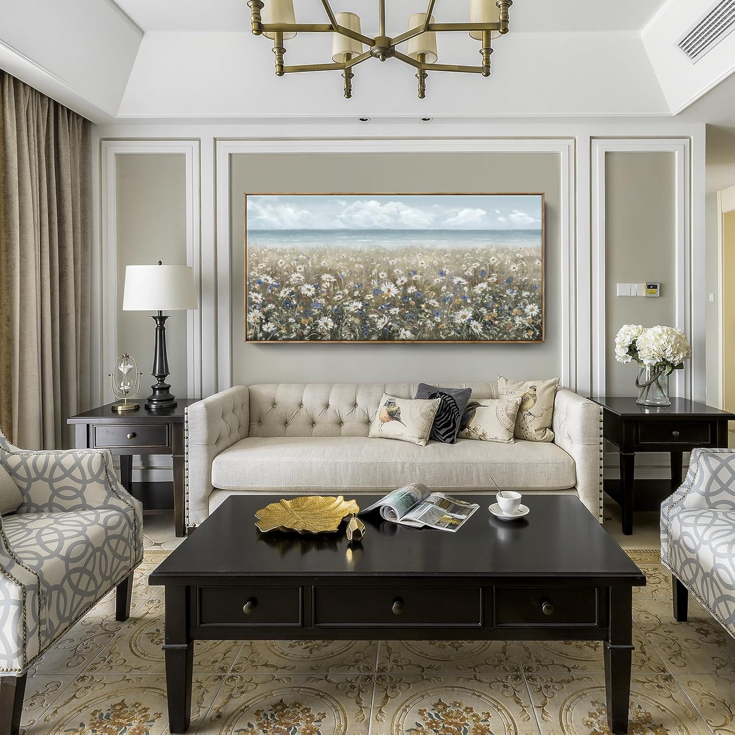 amatop Oversized Wall Art for Living Room Extra Large Farmhouse Boho Framed Beach Coastal Vintage Ocean Floral Canvas Print Daisy Flowers Sea Wall Picture Neutral Nautical Artwork Bedroom Office Decor