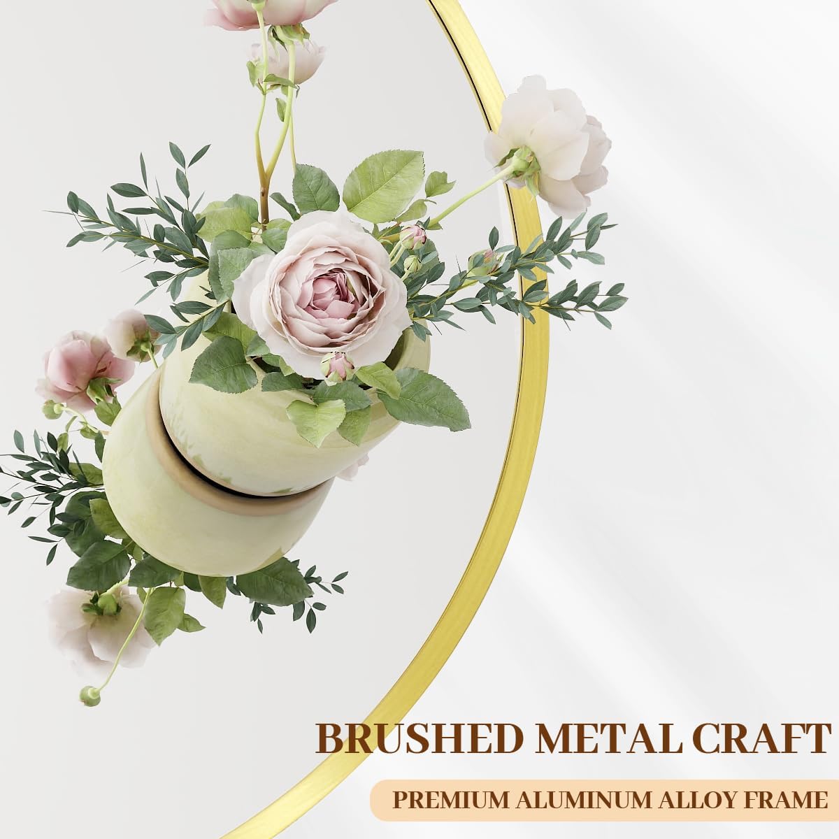 - Modern Brushed Frame Design: 42-inch gold circle mirror is crafted of an aluminum alloy metal sleek frame, making it ideal for bathroom mirror, entrance mirror, vanity mirror, living room mirror