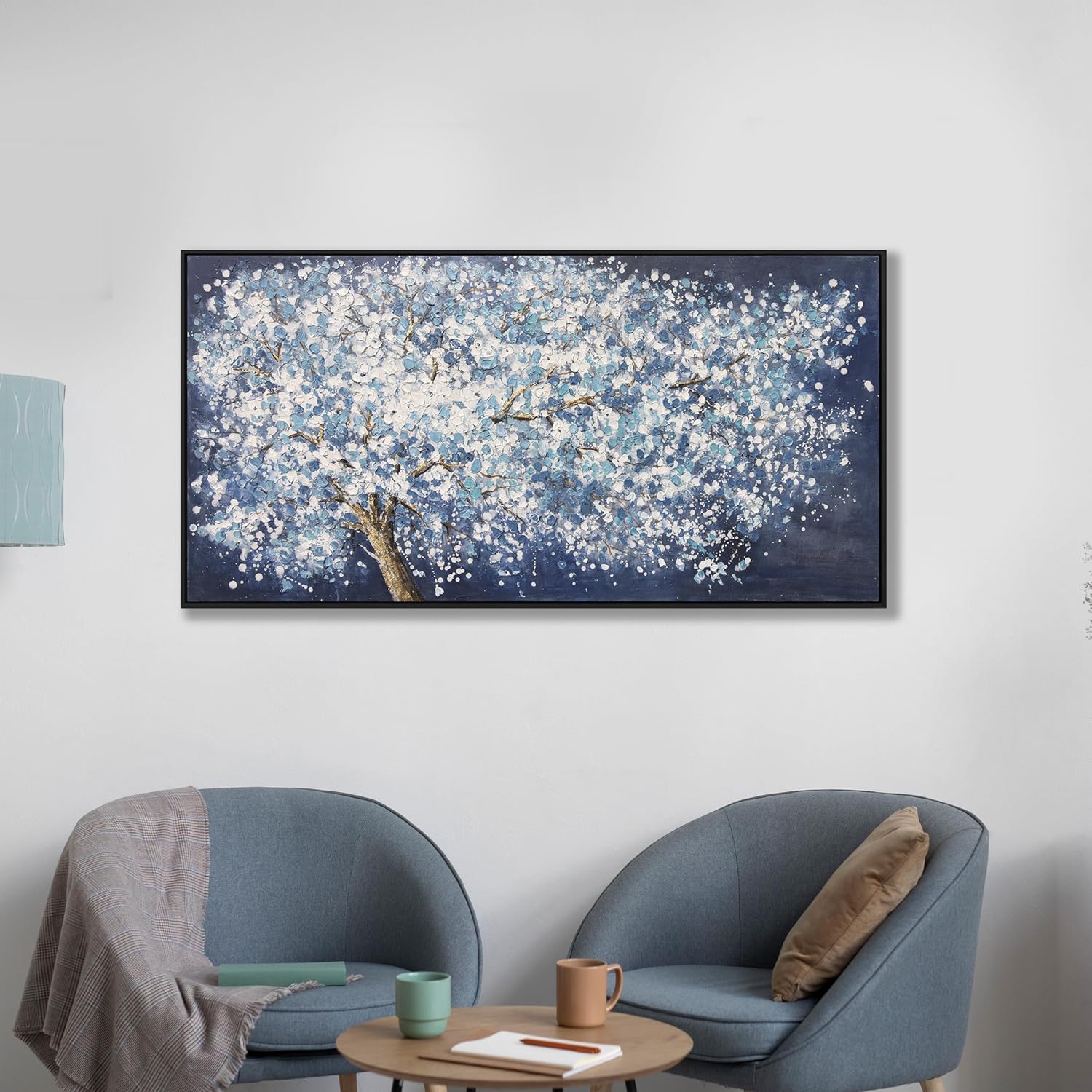 Canvas Wall Art Wall Decor Bedroom Pictures Wall Decoration Dark Blue And White Abstract Tree Plants Artwork Abstract Wall Art Large Size Modern Painting Framed Pictures For Living Room Home Kitchen Office 29"X58"
