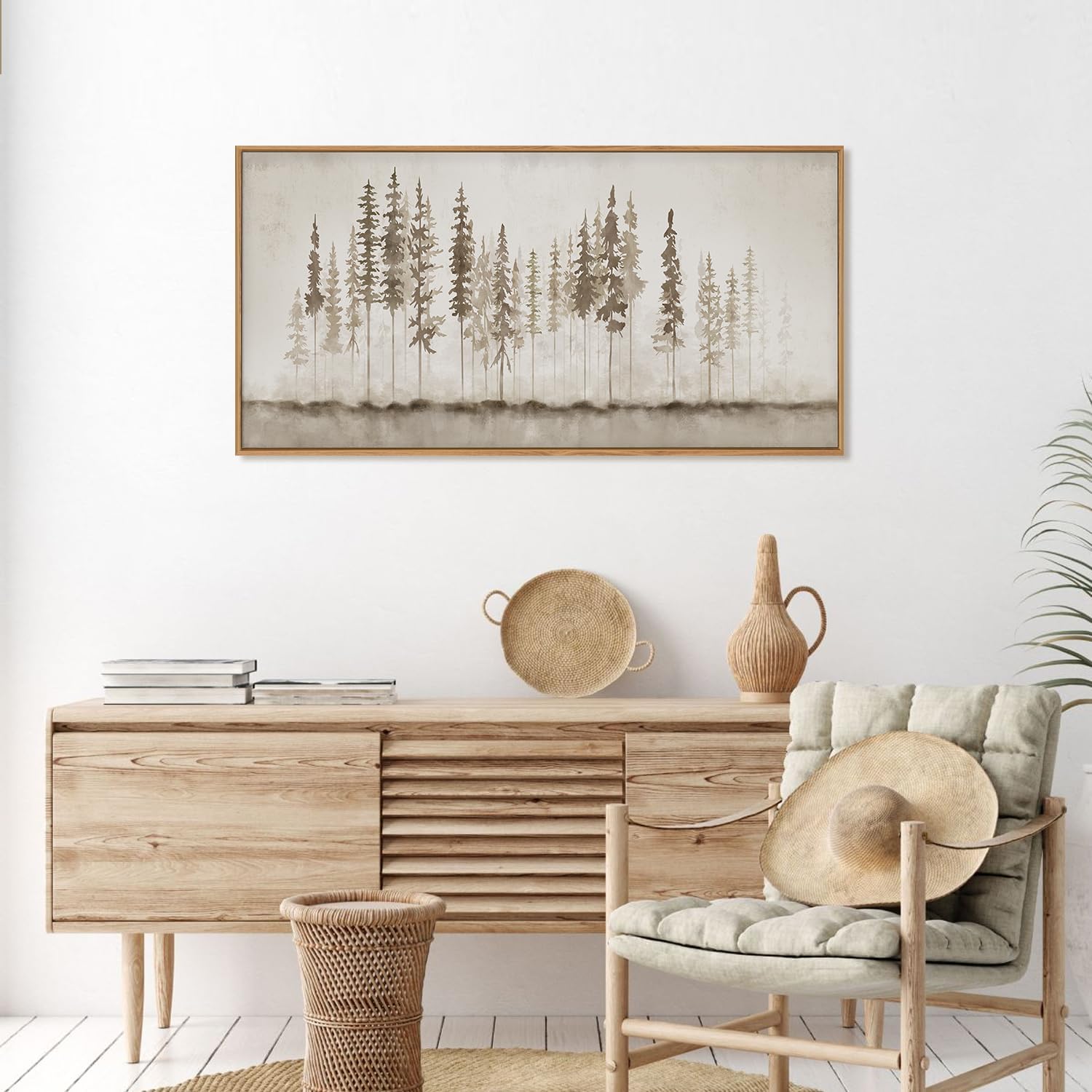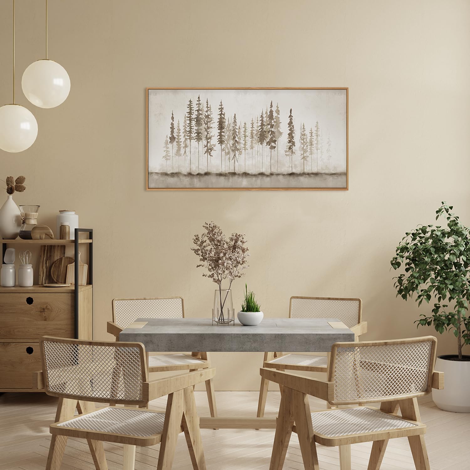 - 【Ideal Decoration Option】This forest wall decor featuring mist-shrouded trees resembling an ink and wash painting is an ideal decoration option. It can be hung in various spaces such as living rooms, bedrooms, bathrooms, hallways, kitchens, dining rooms, and offices, adding a touch of nature and tranquility to any room.