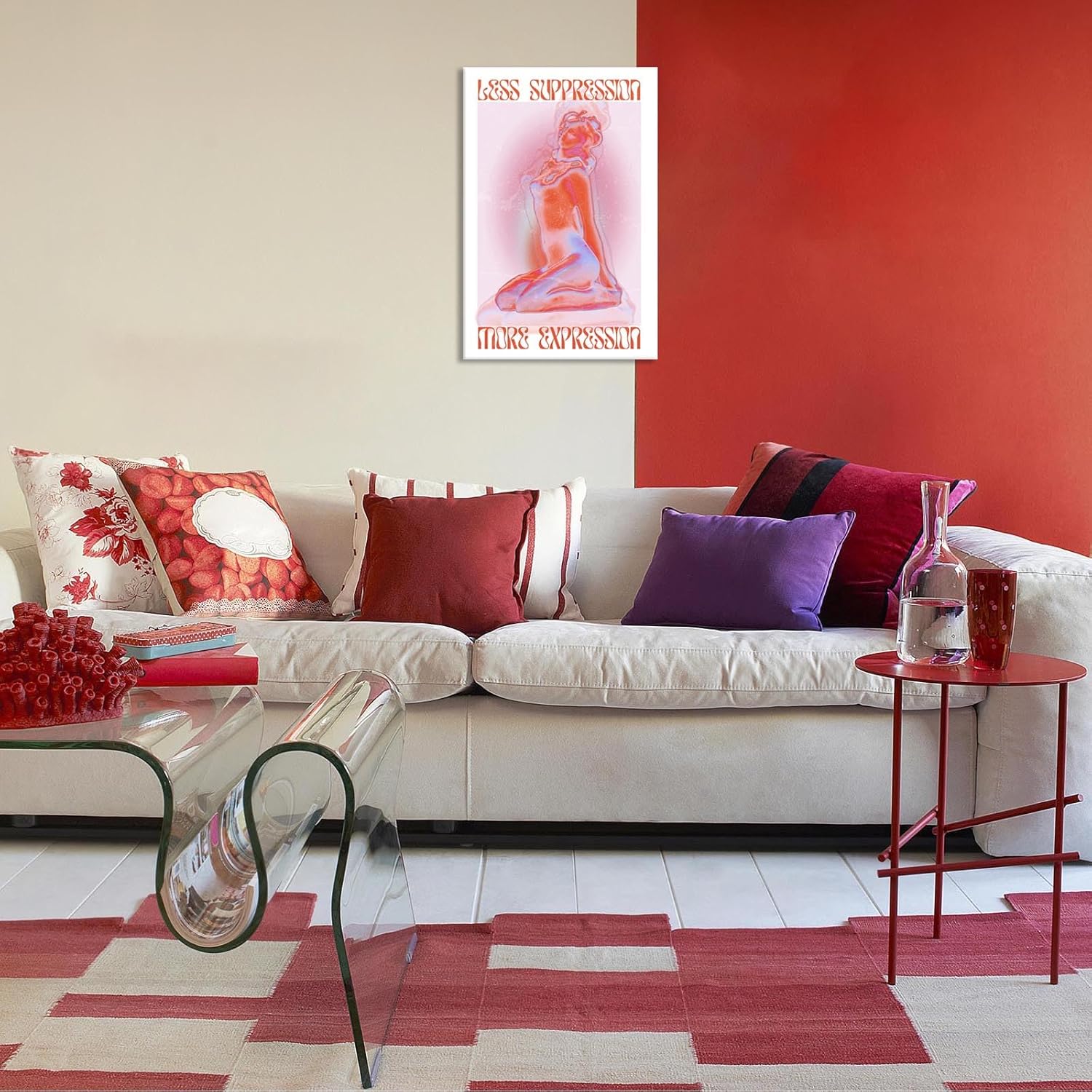 Spiritual Affirmation Art Poster Pink Woman Canvas Wall Art Aesthetic Pictures Sexy Woman Prints Painting Trendy Gradient Aesthetic Wall Decor Living Room Bedroom 24x36in Framed