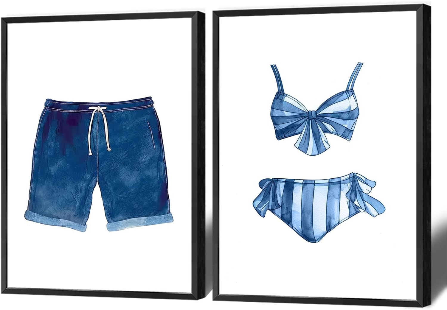 Liyark Set of 2 Retro Navy Blue And White Swimsuit Art Posters Beach Bathing Suit Prints Painting Beach House Wall Art Coastal Wall Decor Pictures For Bathroom Home Decoration 24x36in Framed