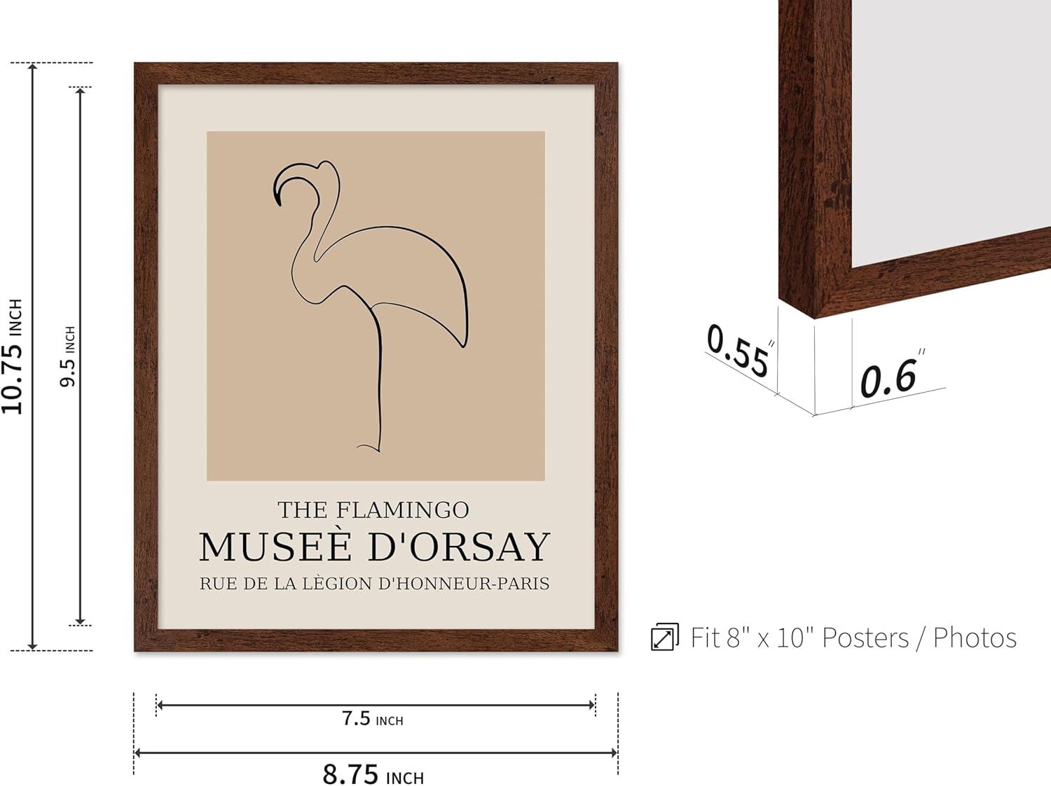 Poster Master Vintage Poster - Retro Minimalist Print - Gift for Artist, Housewarming - Flamingo, Line Drawing, Sketch, Abstract - Wall Decor for Living Room, Bedroom, 11x14 Brown Framed