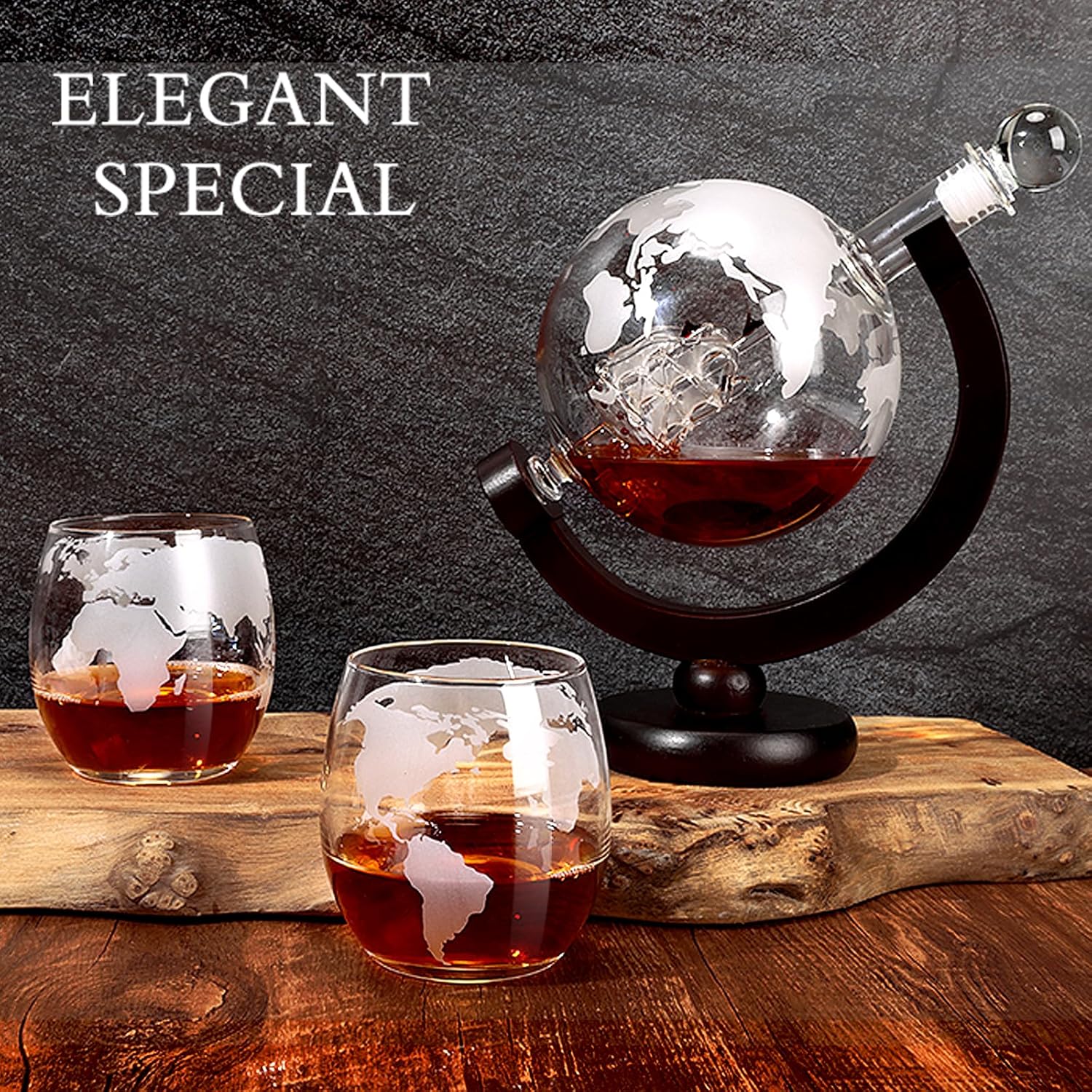 - UNIQUE GIFTS FOR MEN ---- Hand blown elegant whiskey decanter dispenser featuring an etched globe design and antique ship in the bottle will undoubtedly enhance your drinking experience while making a bold impression.